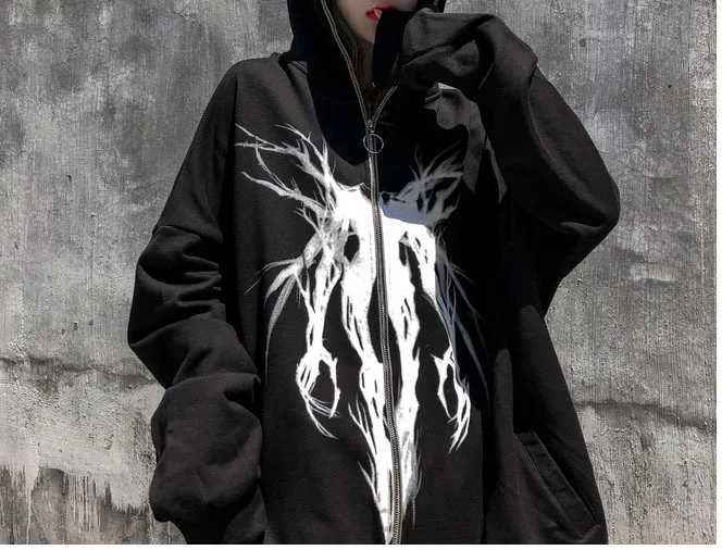Толстовка мужская с капюшоном, готический принт, на молнии, модная ...