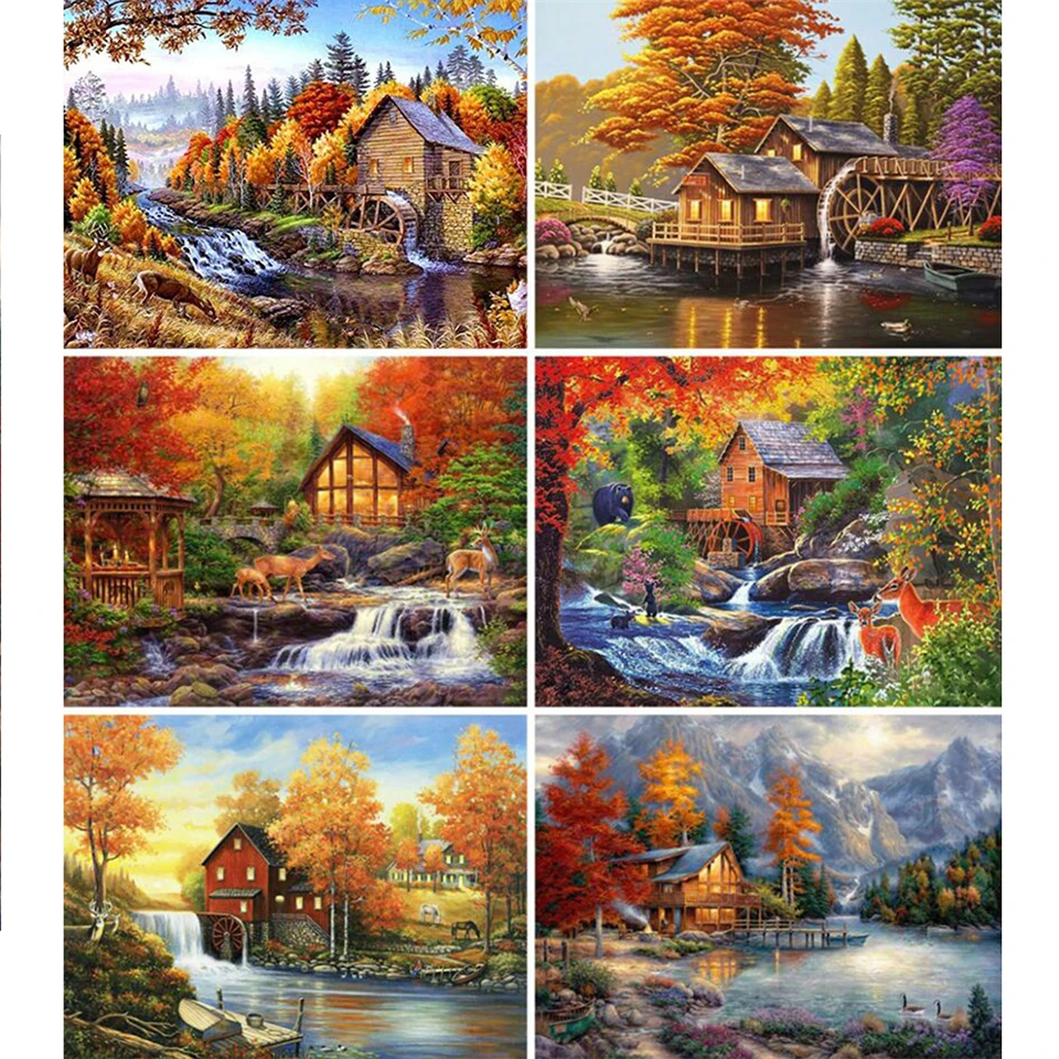 Алмазная 5D картина по номерам сделай сам, полноразмерная вышивка квадратными стразами, пейзаж, осенняя вышивка крестиком, мозаика из страз, украшение на осень