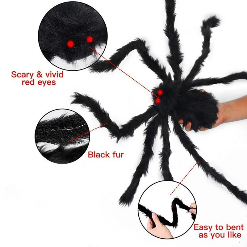 1 шт., большой плюшевый черный паук, многоразмерный, из проволоки и...