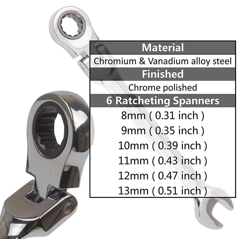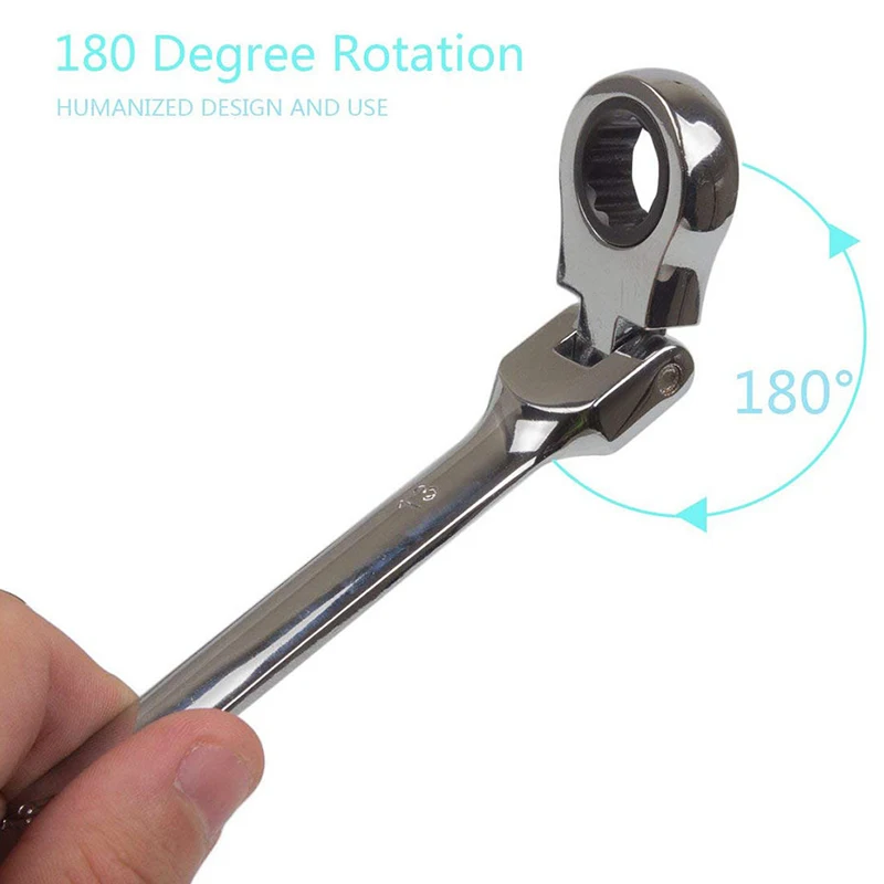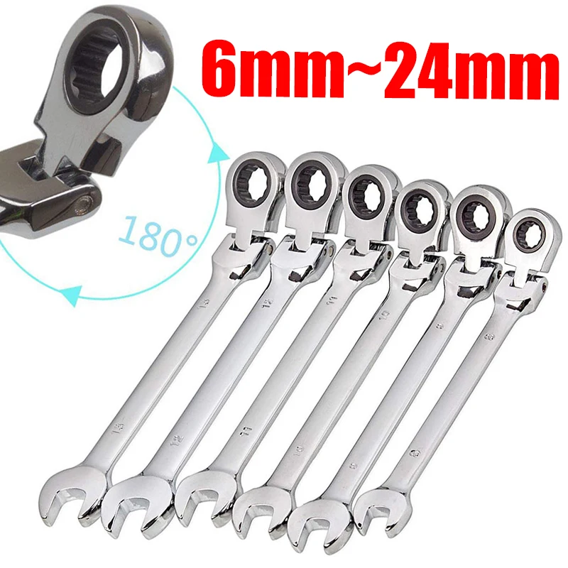Шестигранный ключ 6-23 мм, гибкая отвертка с храповым механизмом, метрический инструмент, Cr-V-образная головка, легированная сталь, Открытое кольцо, 180 , Ремонтный гаечный ключ Torx