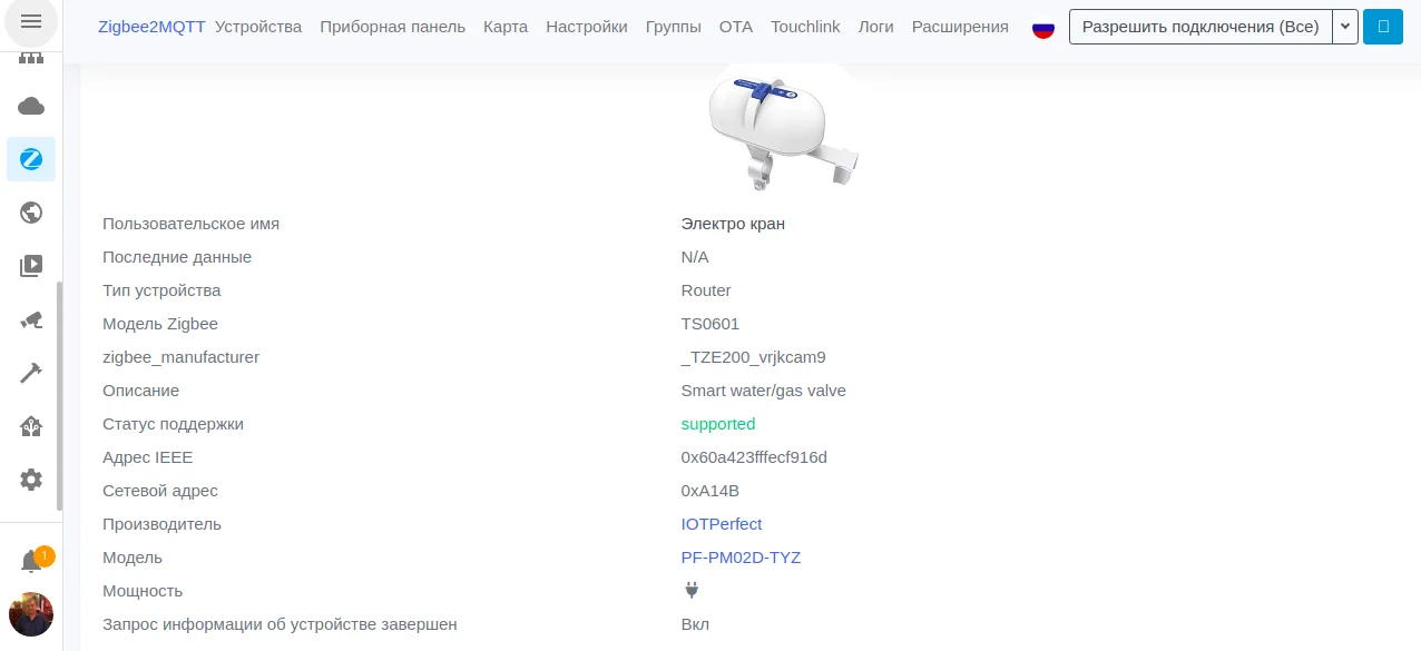 Доставка три недели в постмат. Доставлен целый не вредимый . В комплекте весь крепёж и адаптор 220/12 1а. Подключился к Smart life . Отрабатывает нормально . Есть механическая кнопка для ручного управления краном . Осталось только кран поменять ...