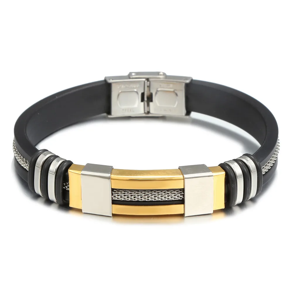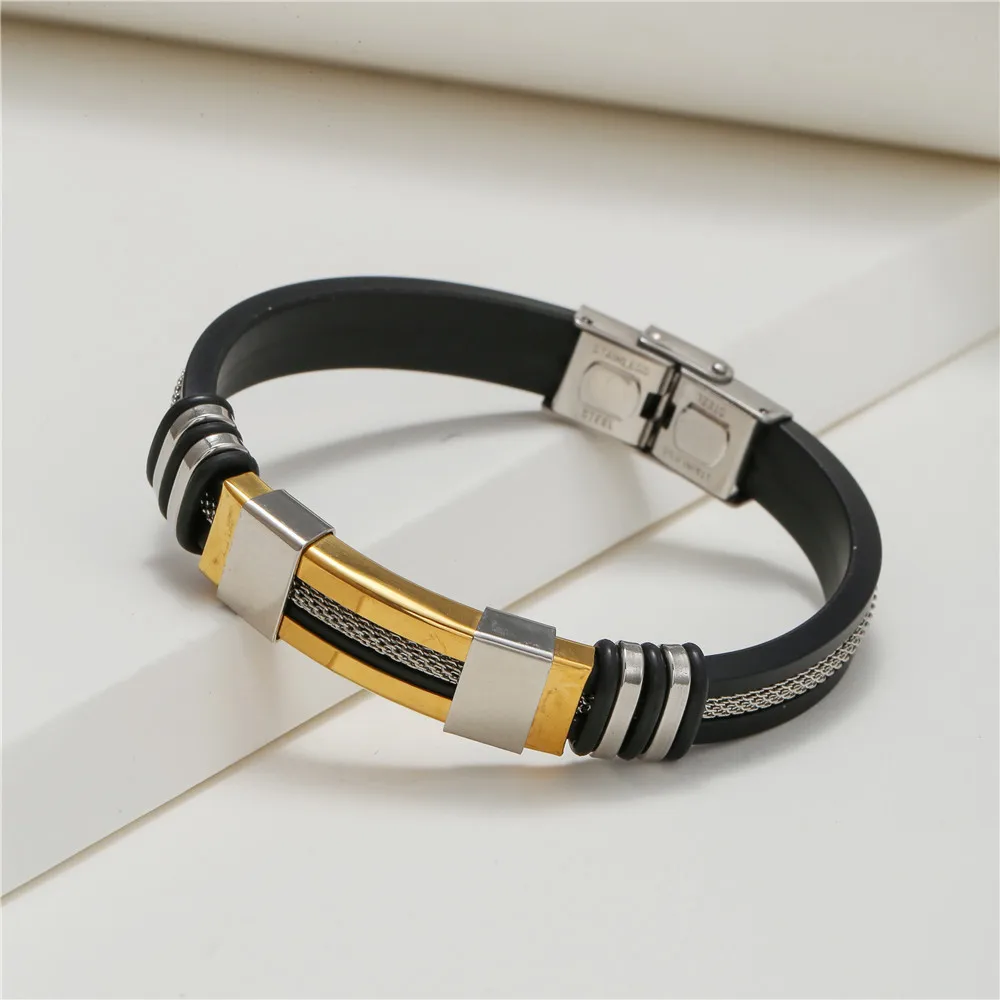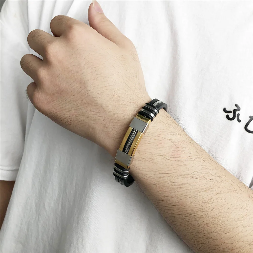 Браслет из титановой стали мужской властный в стиле панк студенческий широкий браслет из нержавеющей стали и силикона не выцветает