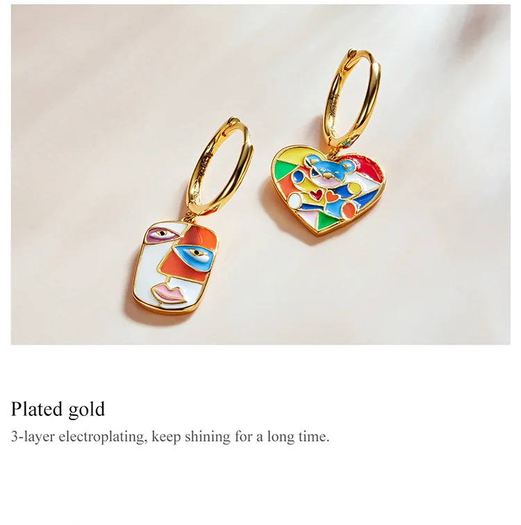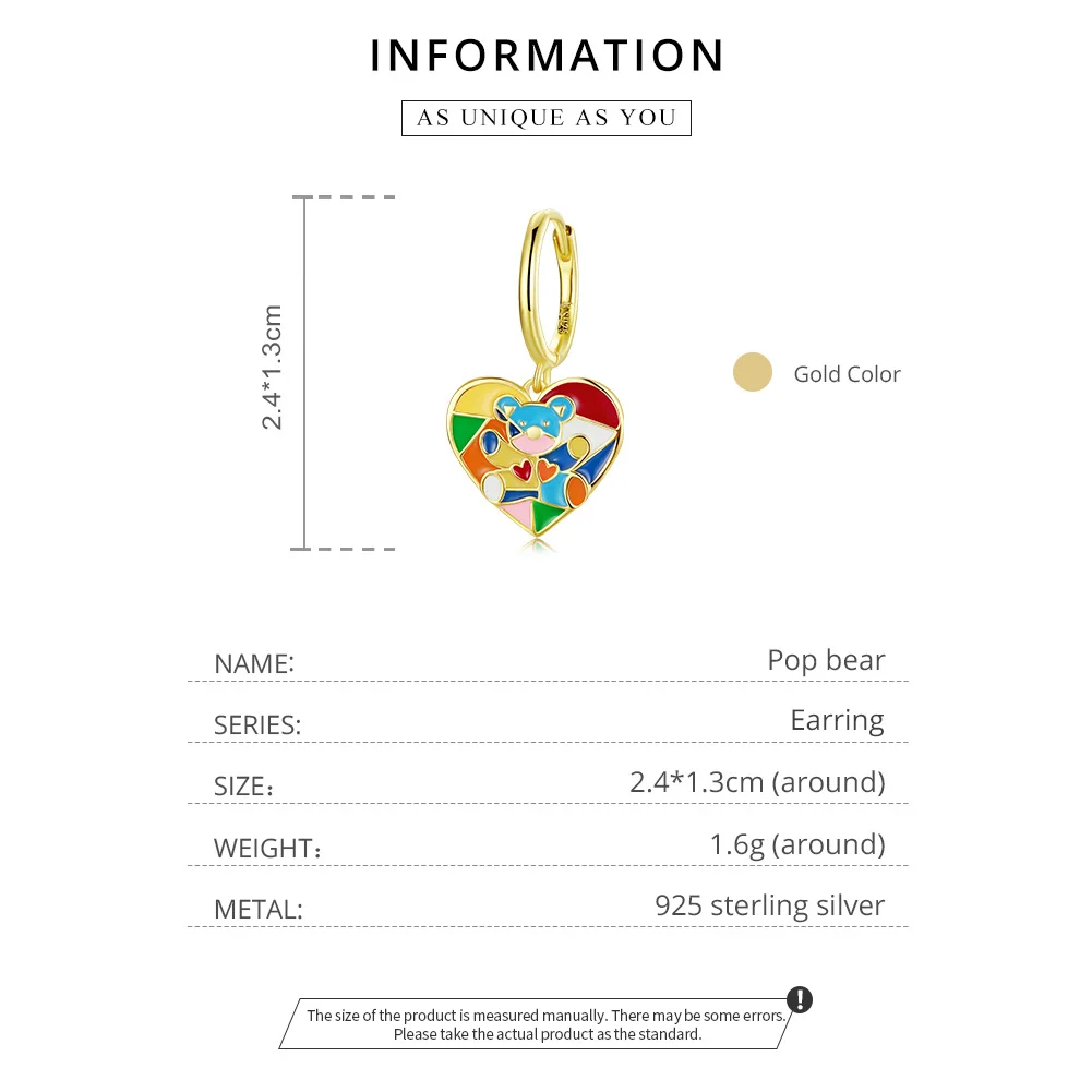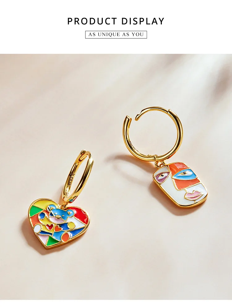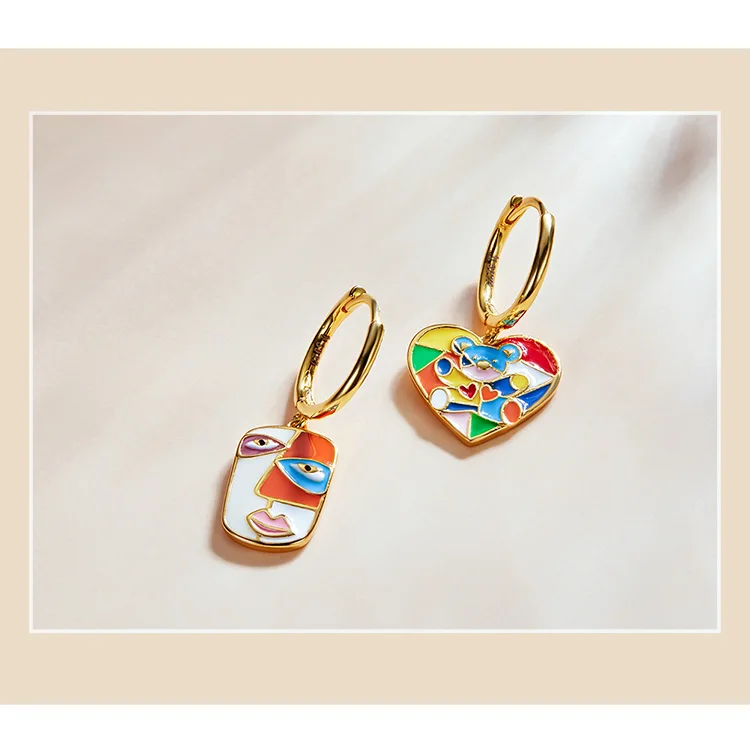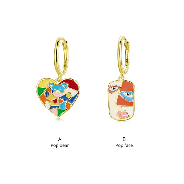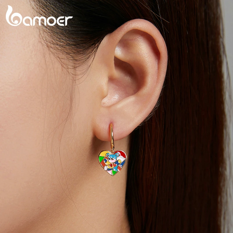 Bamoer, 1 шт., мозаика, серебро 925 пробы, много цветов, медвежонок, Пряжка для ушей, Пикассо, для женщин, вечерние, модные ювелирные изделия