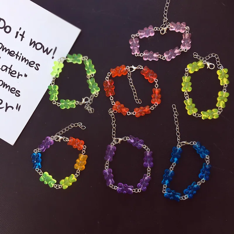Мультяшный браслет с мишками из жевательных медведей, цепочка из нержавеющей стали, подвески, браслеты для женщин и мужчин, ювелирные изделия на запястье до лодыжки, подарок для девушек