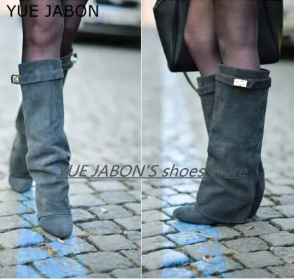 Новые зимние высокие сапоги до колена с металлическим замком акулы,...