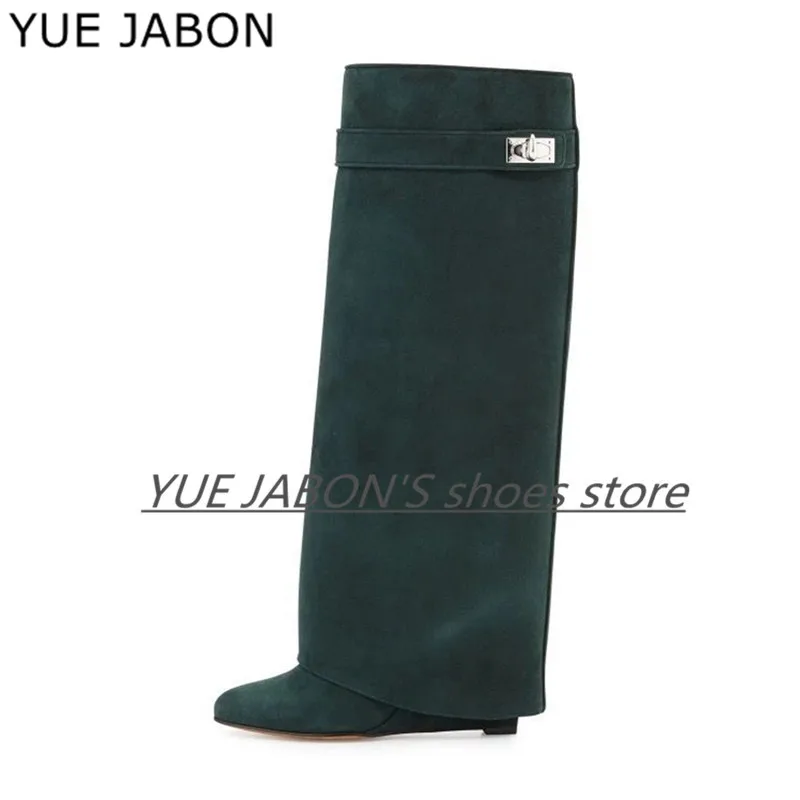 Женские сапоги на танкетке Shark Lock, ботфорты из натуральной кожи...
