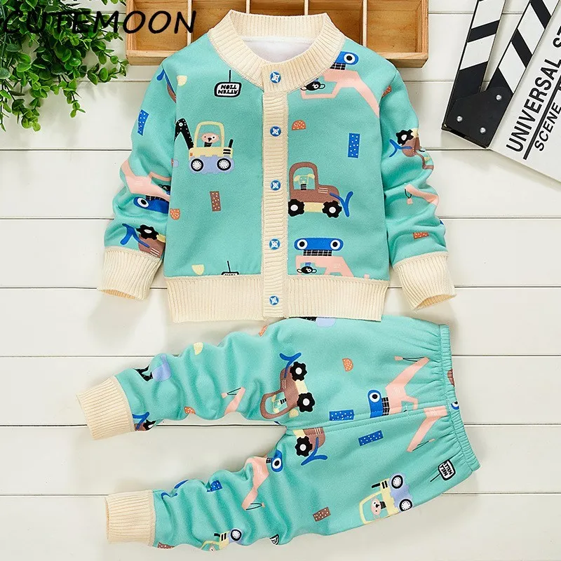 Зимняя детская одежда для малышей теплый комплект одежды для маленьких девочек, бархатный костюм с рисунком для От 1 до 3 лет