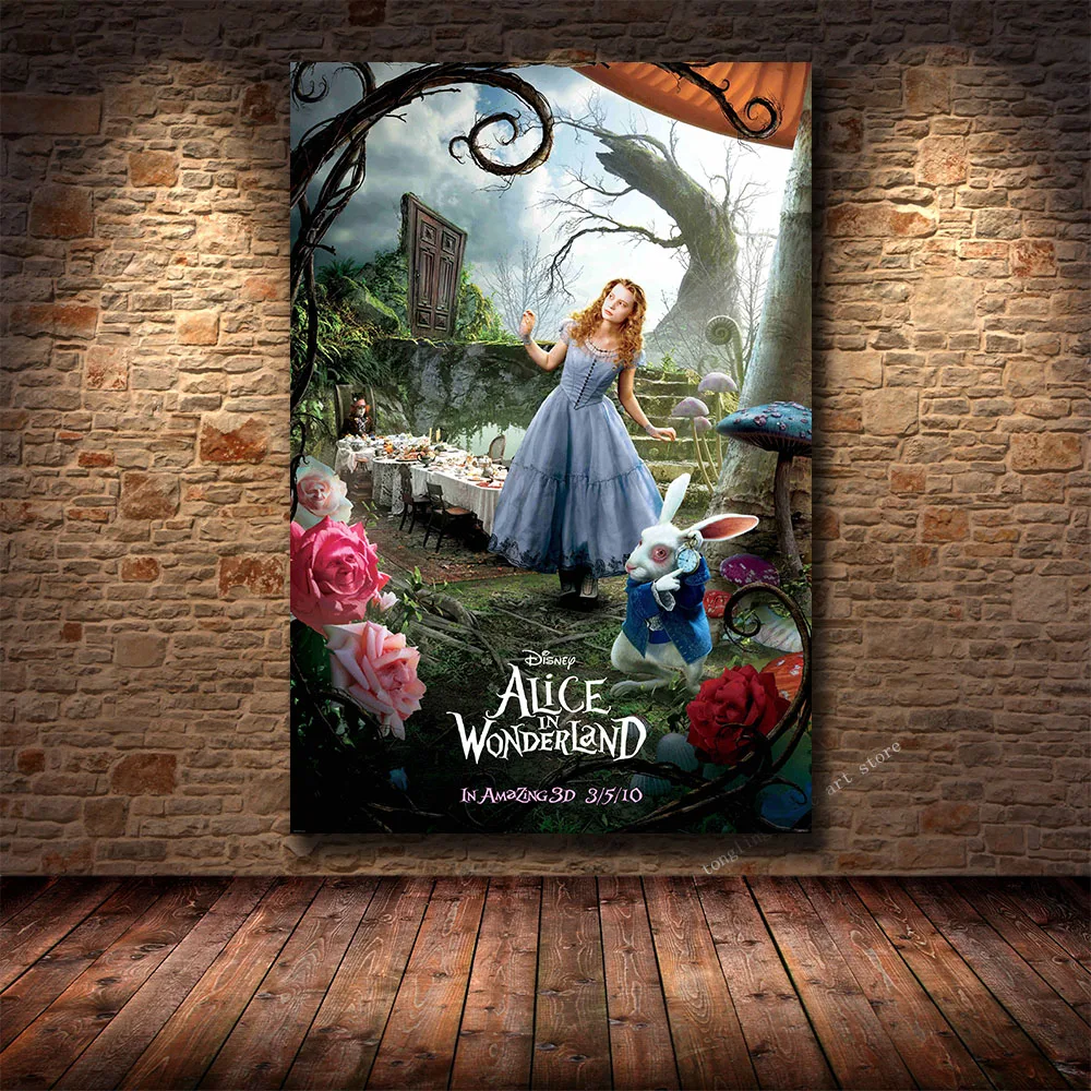 Плакат с изображением Алисы в стране чудес из популярного мультфильма Disney, Картина на холсте для украшения гостиной, спальни