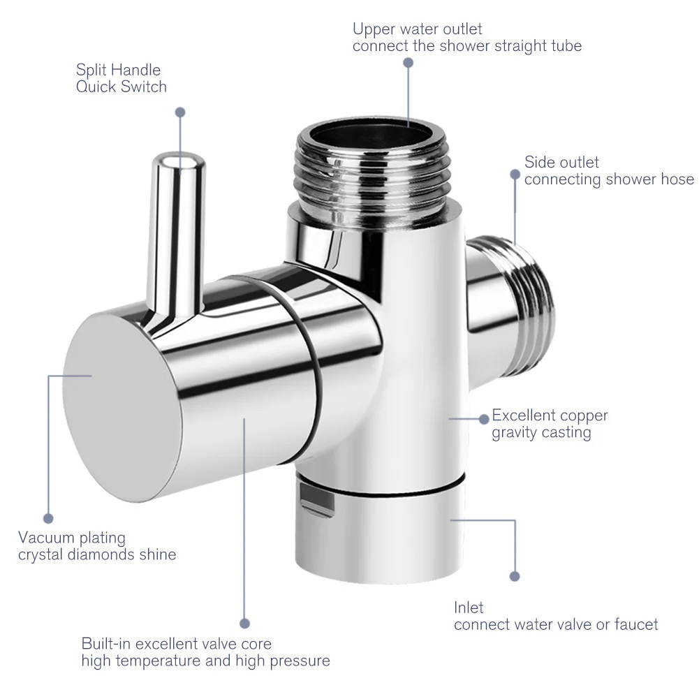 Латунный отводящий клапан, 3-ходовой водяной сепаратор, адаптер для душа, регулируемая душевая головка, отводящий клапан, клапан для ванной комнаты и душа