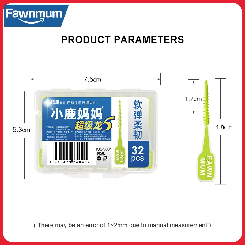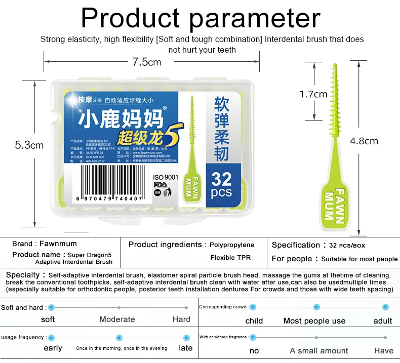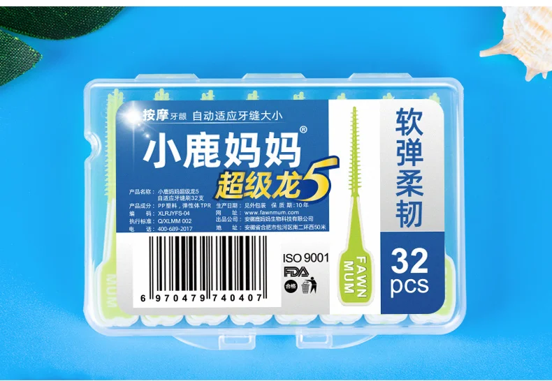 Это коробка из 32 межзубных кистей. Зубочистки изготовлены из пищевых материалов, мягкие по текстуре, нетоксичные, безопасные, здоровые и экологически чистые.