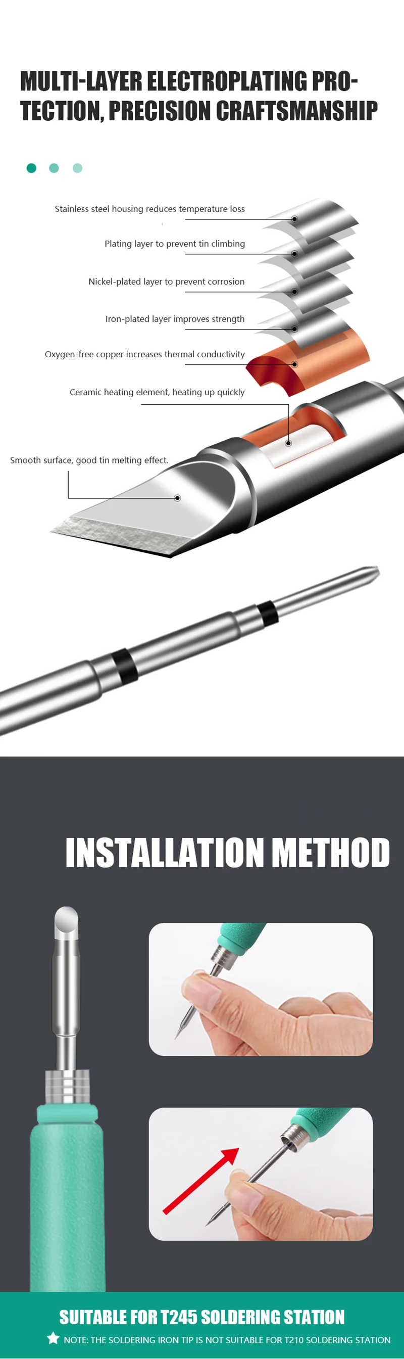 Универсальные наконечники для паяльника T245 JBC, наконечники для железа, нагревательная сердцевина 2 в 1, наконечники для ручки паяльной станции