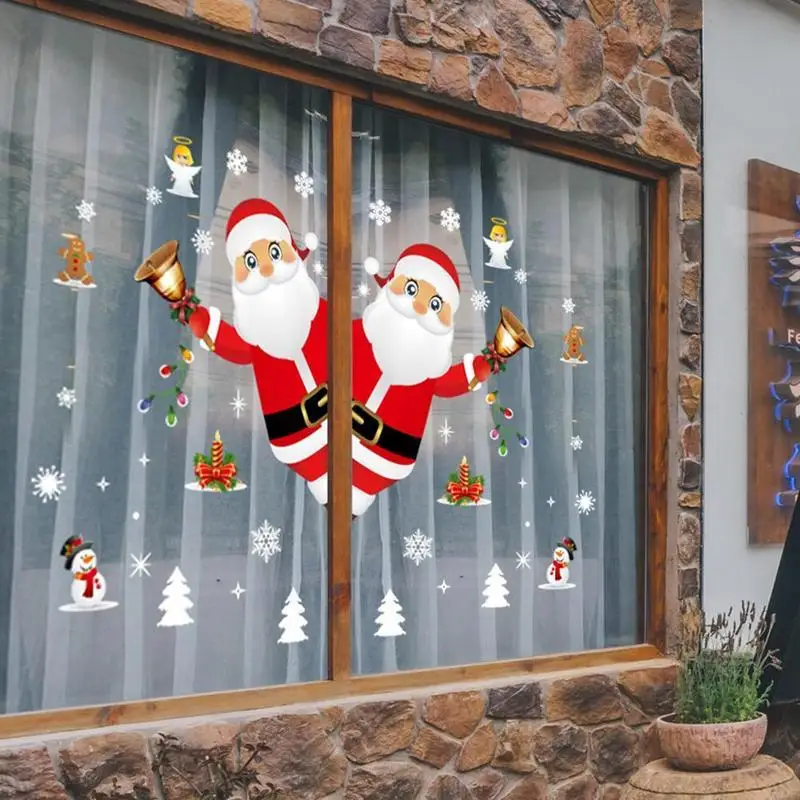 Съемная Рождественская наклейка из ПВХ, наклейки на окна в виде Санта-Клауса, снежинки, Наклейки на стены, Новогодняя вечеринка, наклейка на стекло, 2022