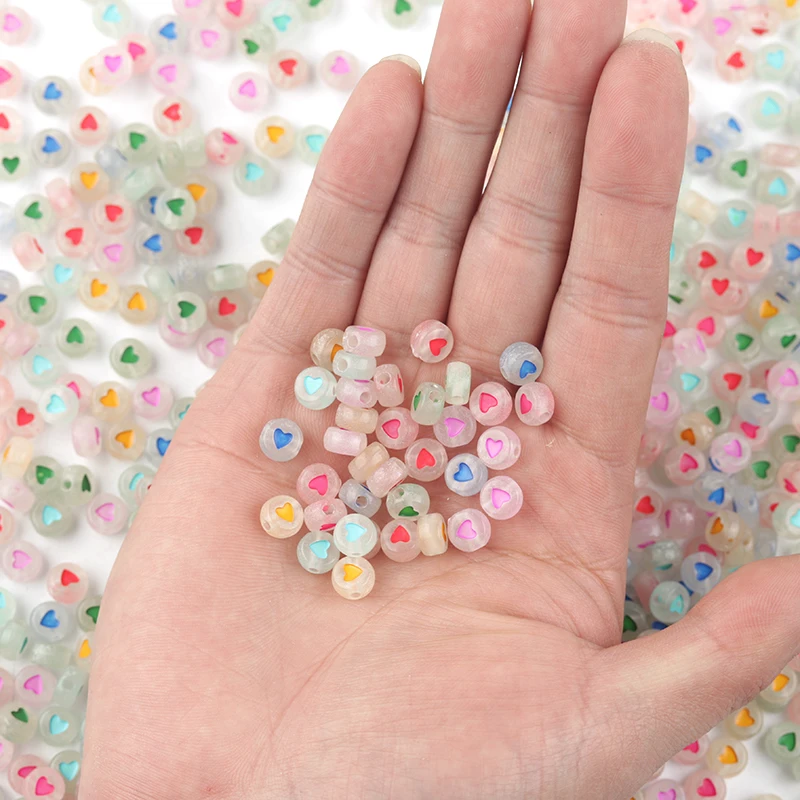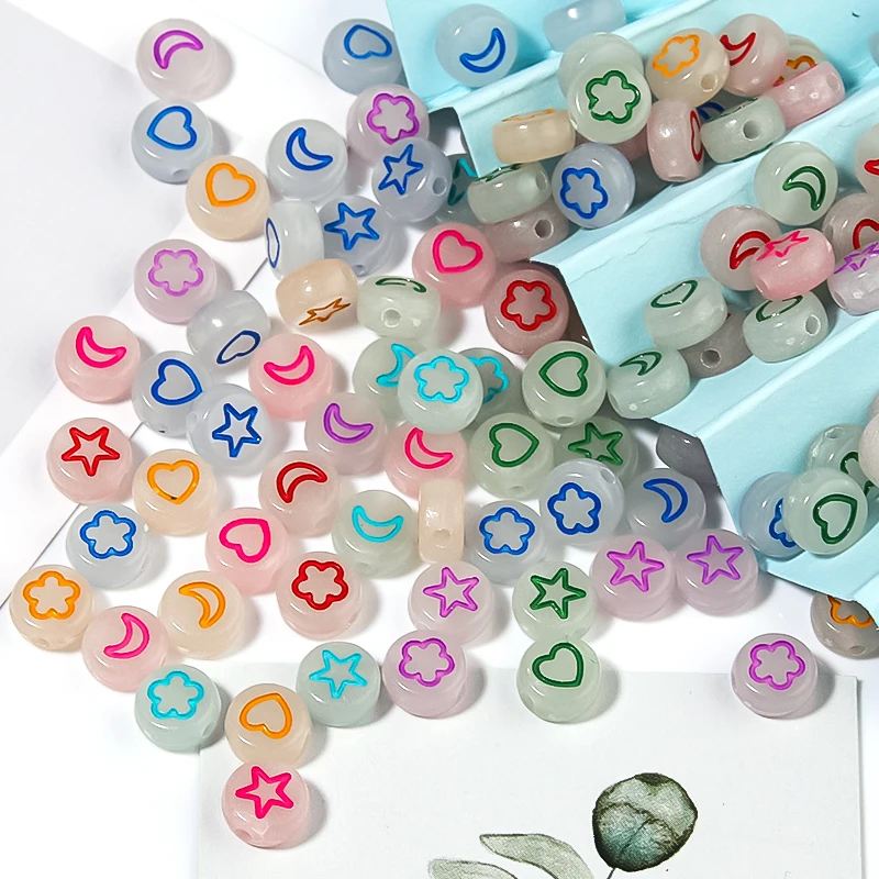 100 шт DIY бисером материал раннее образование акриловые звезды персик сердца и буквы светящиеся плоские бусины Квадратные бусины Круглые свободные бусины