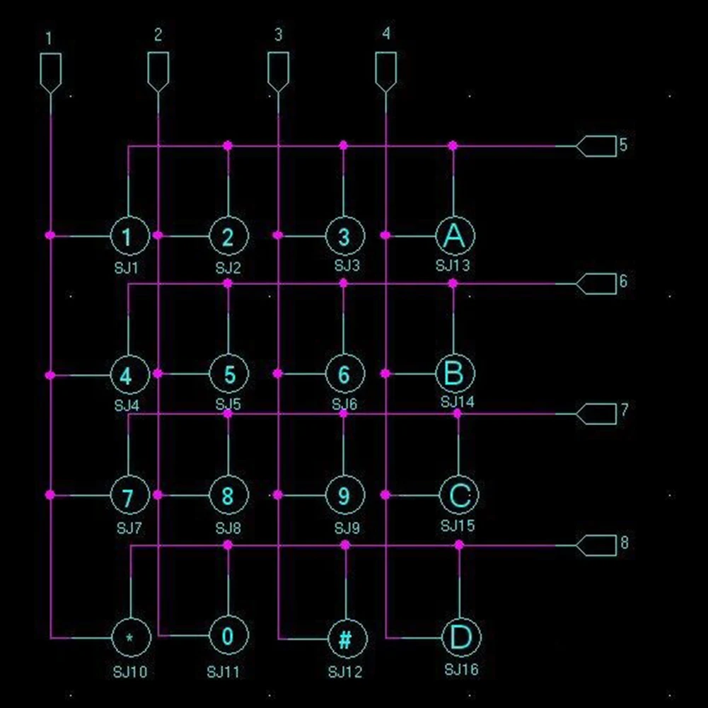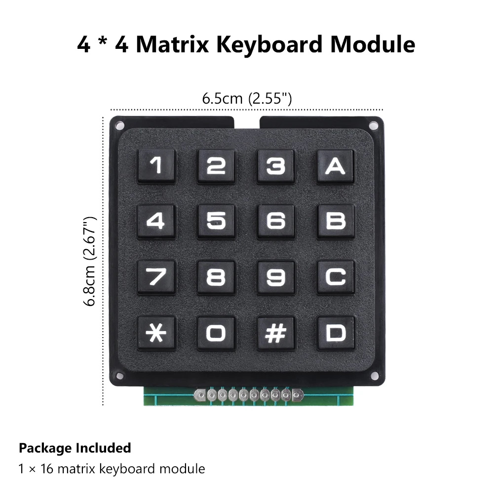 12/16 Кнопки Матрица.Он предлагает 0-9 цифр, A-D букв, стандартные символы звезды (*) и хеша (#).