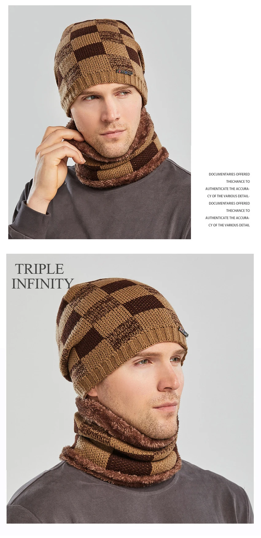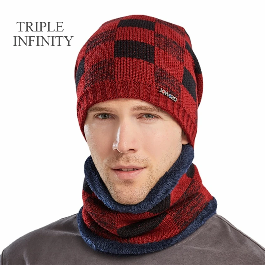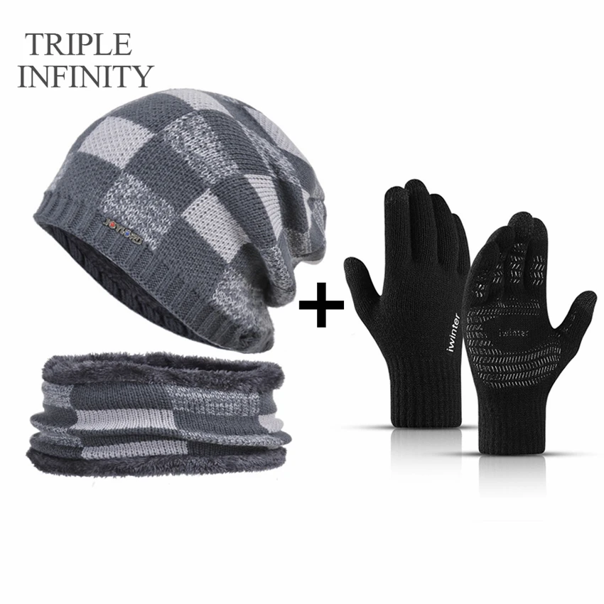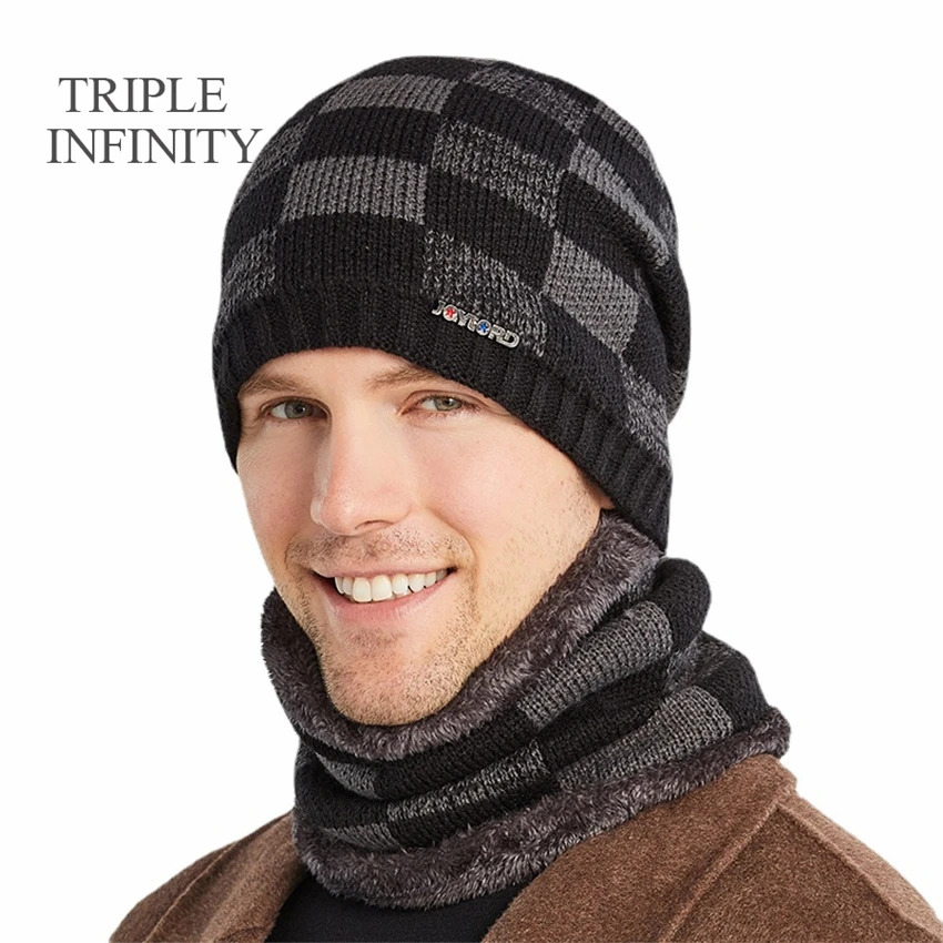 Новая зимняя мужская шапка и шарф TRIPLE INFINITY, Мужская однотонная теплая шапка, плотные ветрозащитные мужские шляпы, уличные аксессуары, шапки