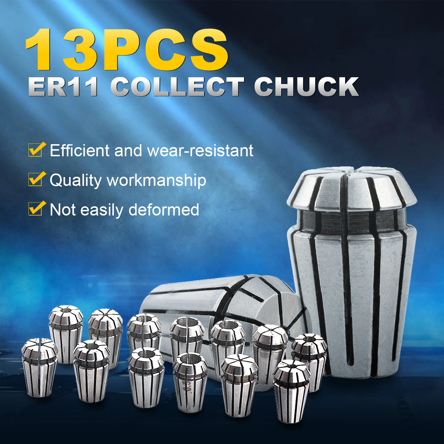 Цанга ER11 Цанга 13 шт. Цанга er11 от 1 мм до 7 мм, бьющаяся 0,1 мм точность для токарного станка с ЧПУ и шпинделя.