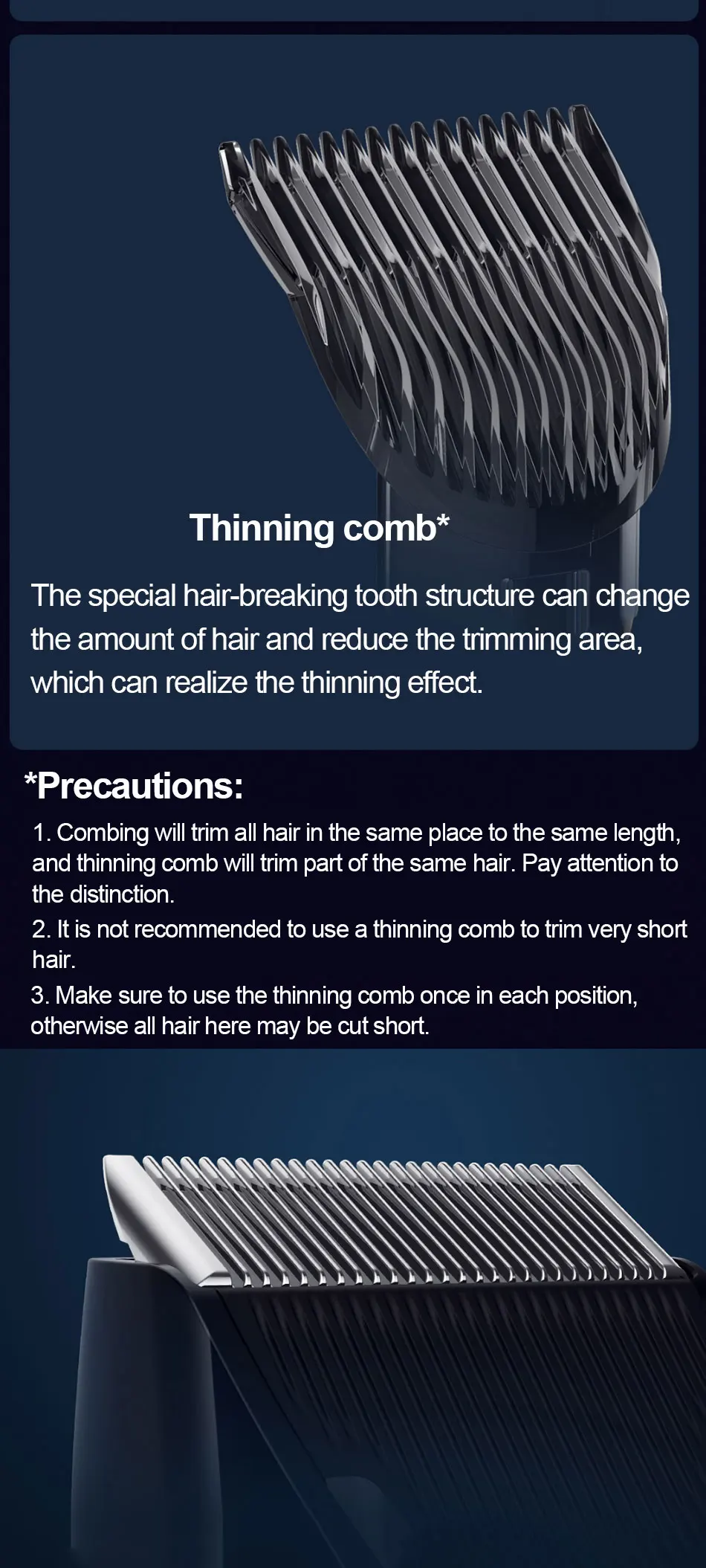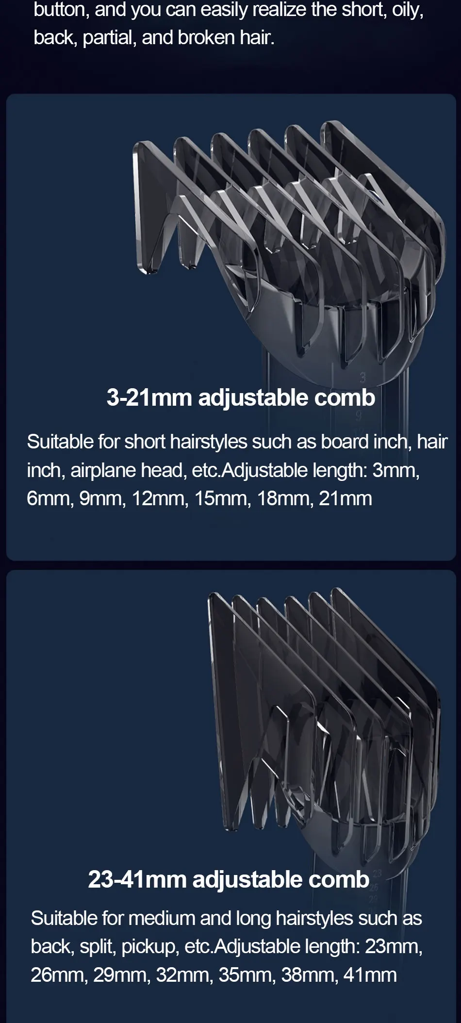 Вес нетто хоста: 266 гРазмер хоста: 47 × 45 × 182 ммЦвет изделия: черныйВремя зарядки: 2,5 часовНоминальное напряжение: 3,7 VНоминальная мощность: 3 ВтВходные параметры: 5 В = 1 А* Меры предосторожности:1. Расчесывание будет подстригать все волосы в одном месте до такой же длины, а истончение расчески будет обрезать часть одного и того же волоса. Обратите внимание на различия.2. Не рекомендуется использовать тонкую расческу, чтобы обрезать очень короткие волосы.3. Убедитесь в том, что используйте разбавляющую расческу один раз в каждом положении, в противном случае все волосы здесь могут быть коротки.