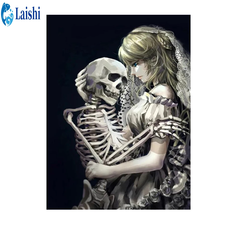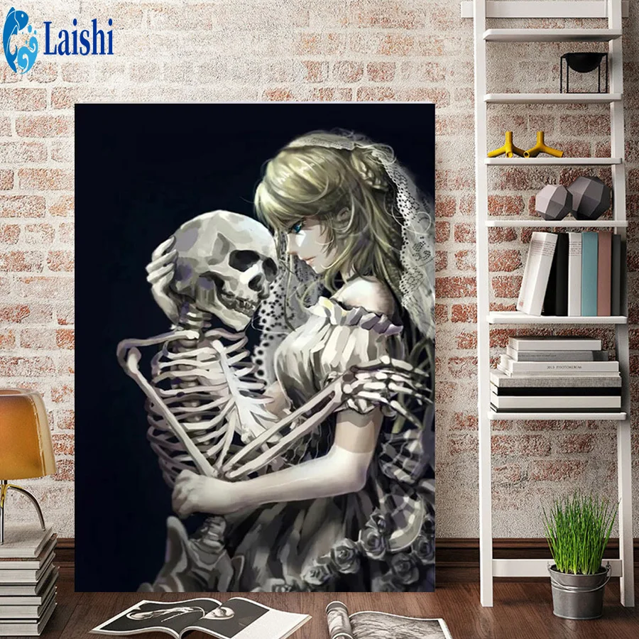 Алмазная живопись сделай сам, картина Стразы с черепом и девушкой, обнимающая, полностью квадратнаякруглая, 5D алмазная вышивка