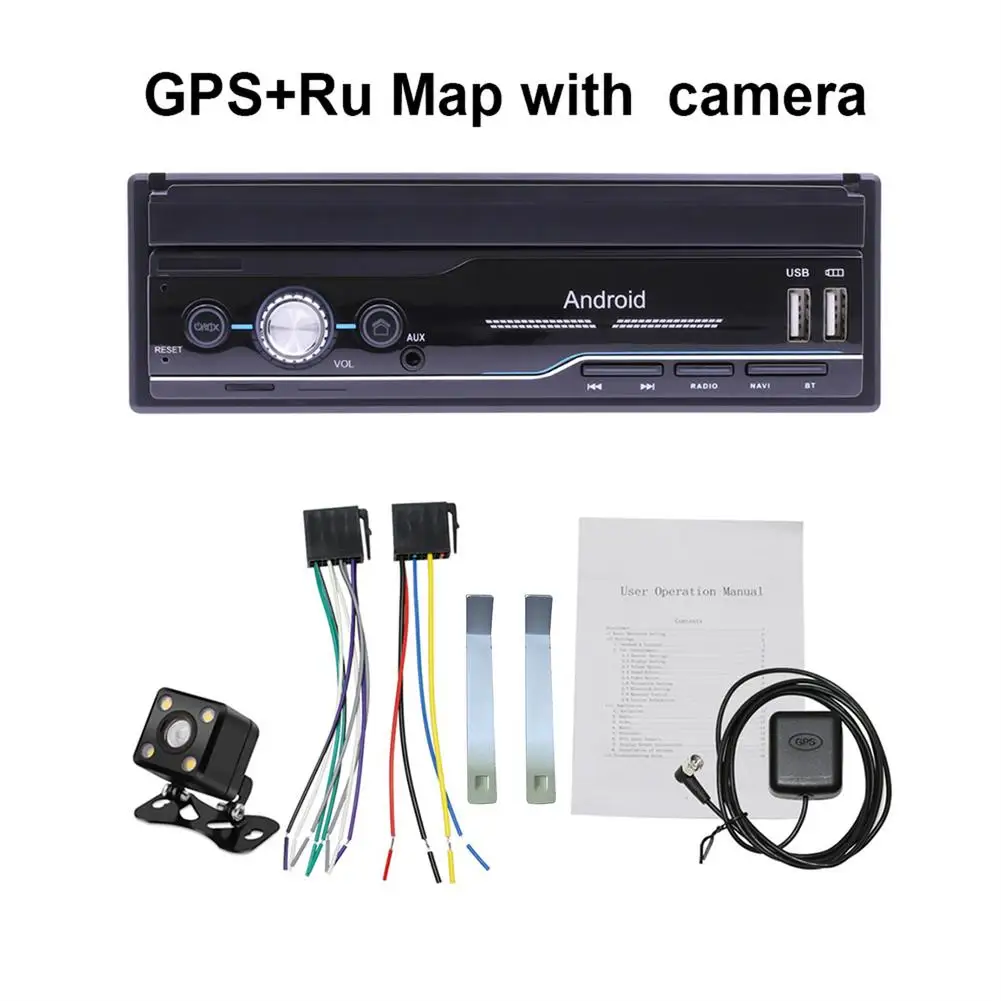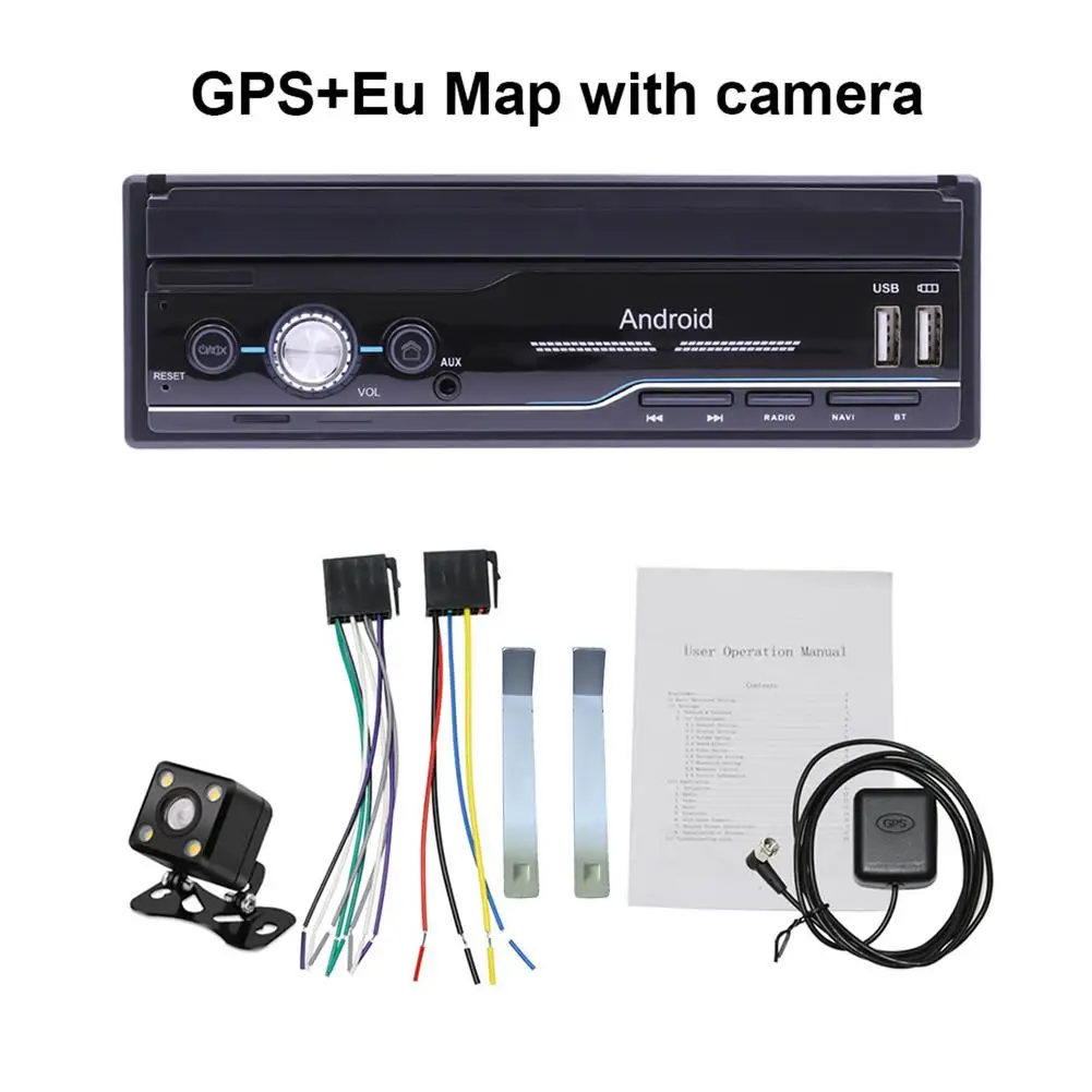 Автомагнитола 1 Din, выдвижная, Android 7 дюймов, GPS-навигация, Bluetooth, камера AM R d. S, 1080P, USB, автоэкран, мультимедийный плеер
