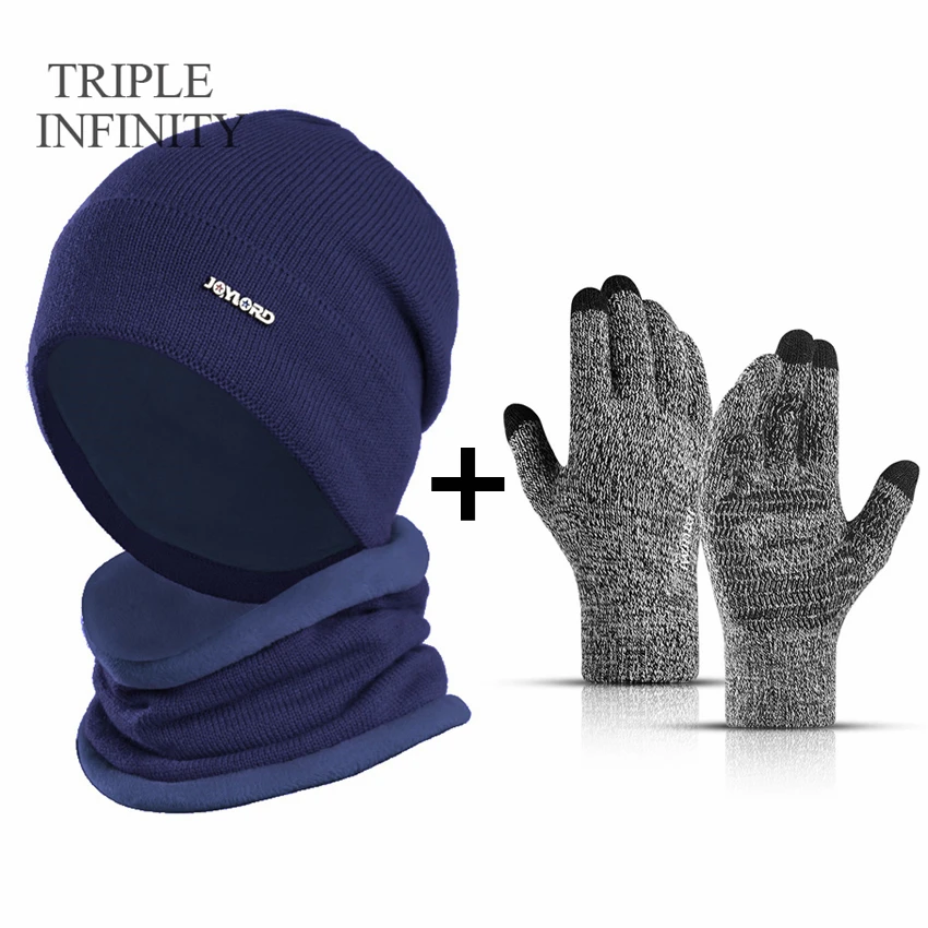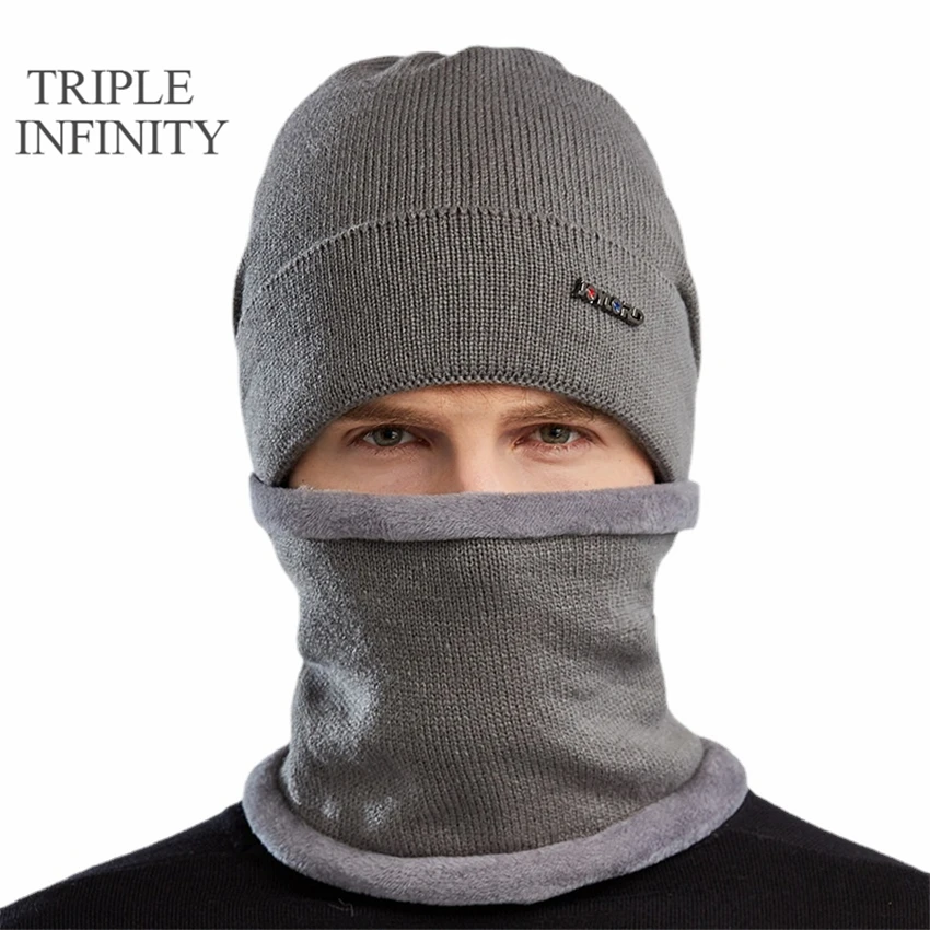 Хит продаж, зимняя мужская однотонная теплая шапка-шарф TRIPLE INFINITY, Мужская Уличная эластичная мягкая удобная шапка унисекс