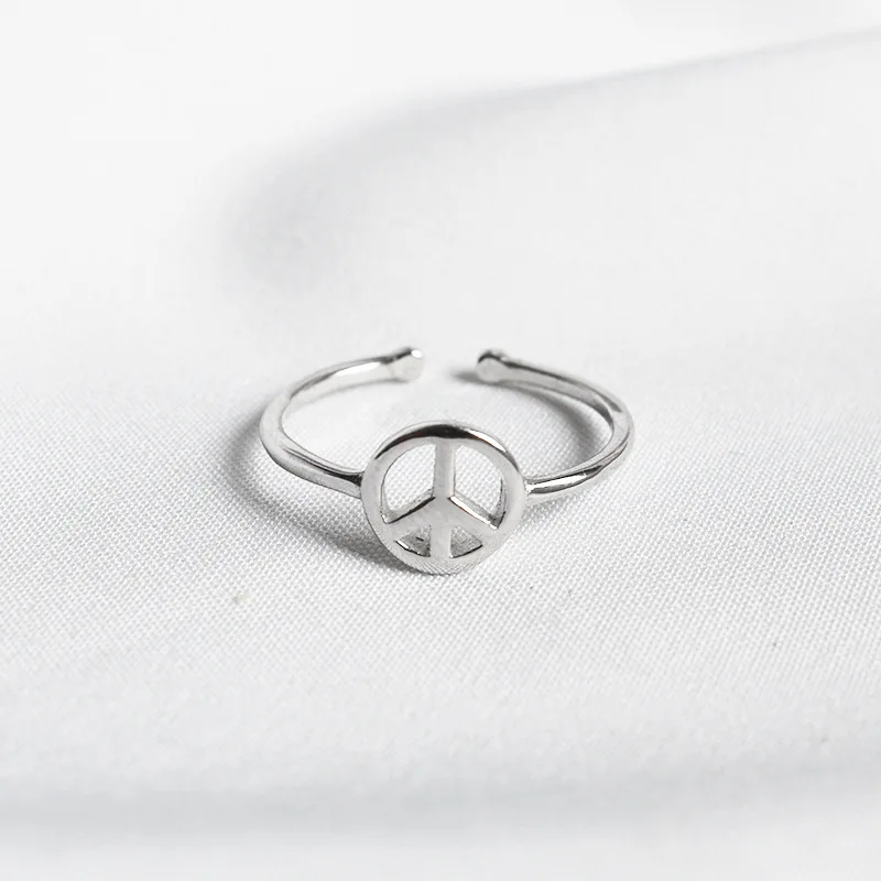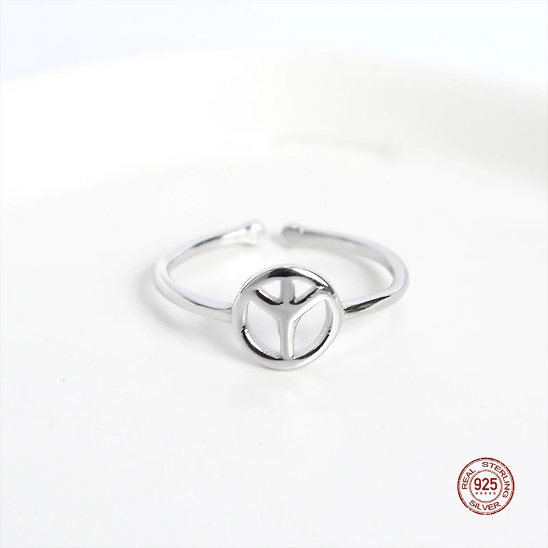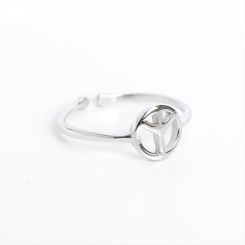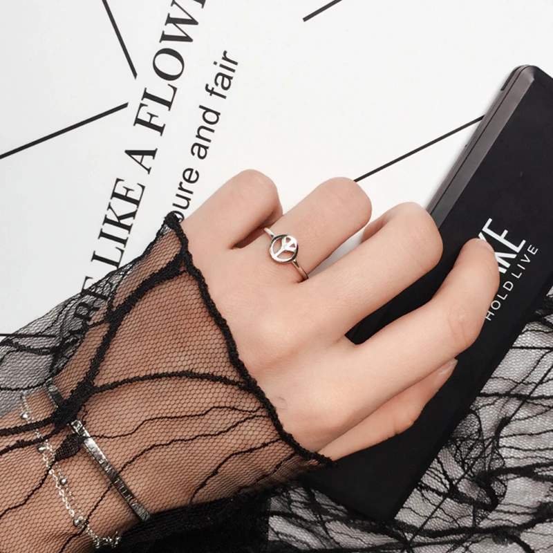 LKO настоящее кольцо из стерлингового серебра 925 пробы, простой знак мира, открывающее кольцо для женщин, вечерние украшения, милое кольцо для девочек, регулируемые аксессуары, подарок