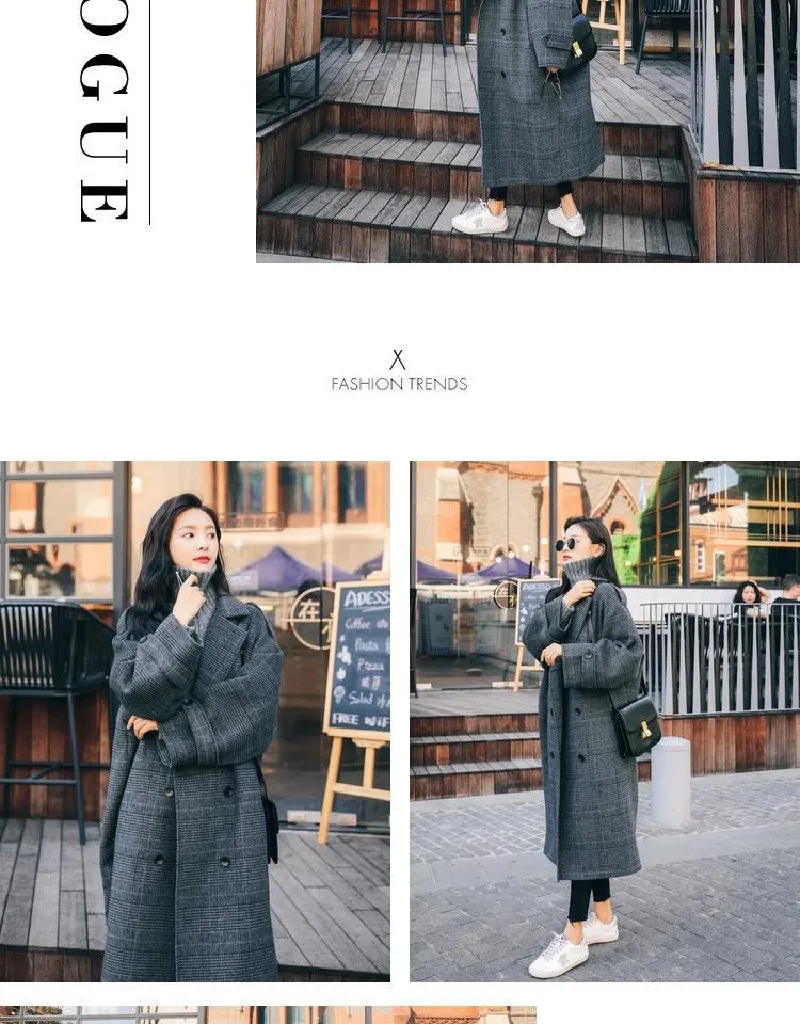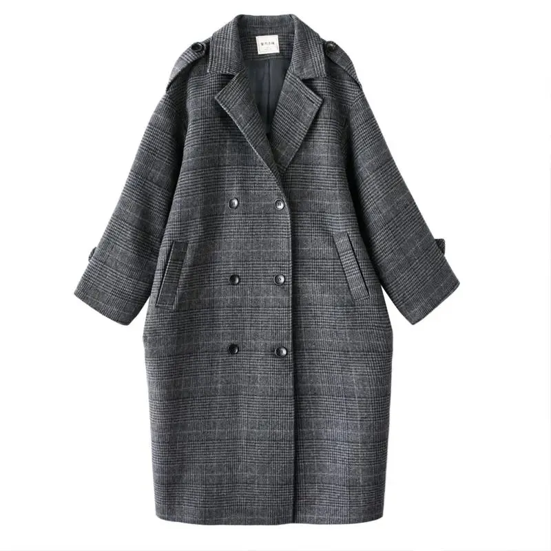 Женское шерстяное пальто, элегантная клетчатая водолазка, свободная длинная твидовая верхняя одежда, осень-зима 2021