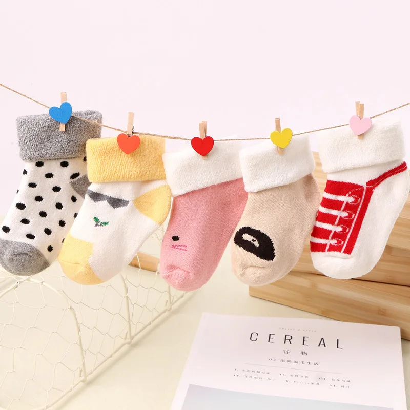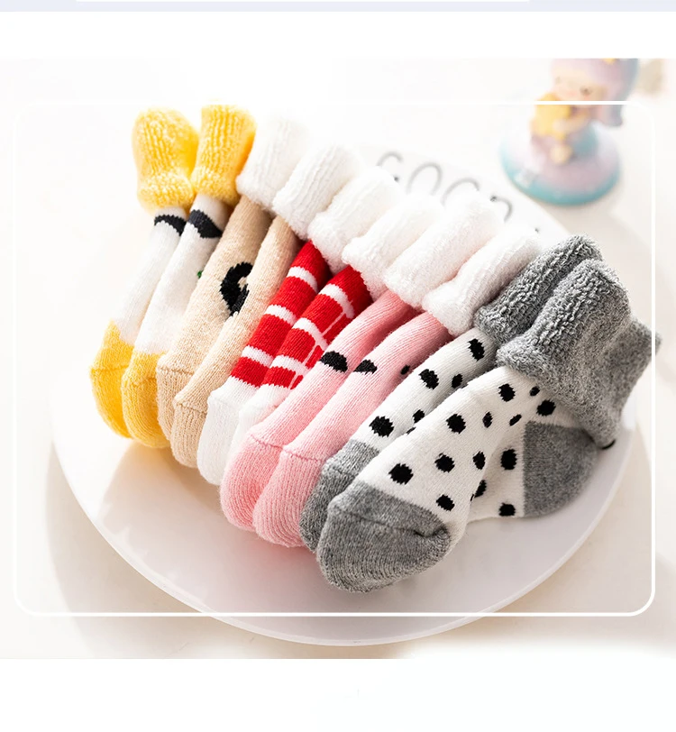 5 парнабор осень-зима теплый в полоску для малышей, милые носки с принтом в виде персонажей из мультфильма в горошек; Плотные носки-тапочки для малышей Мягкие со звездным рисунком для новорожденных; Носки для малышей