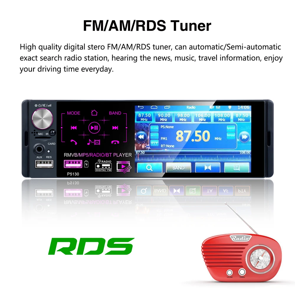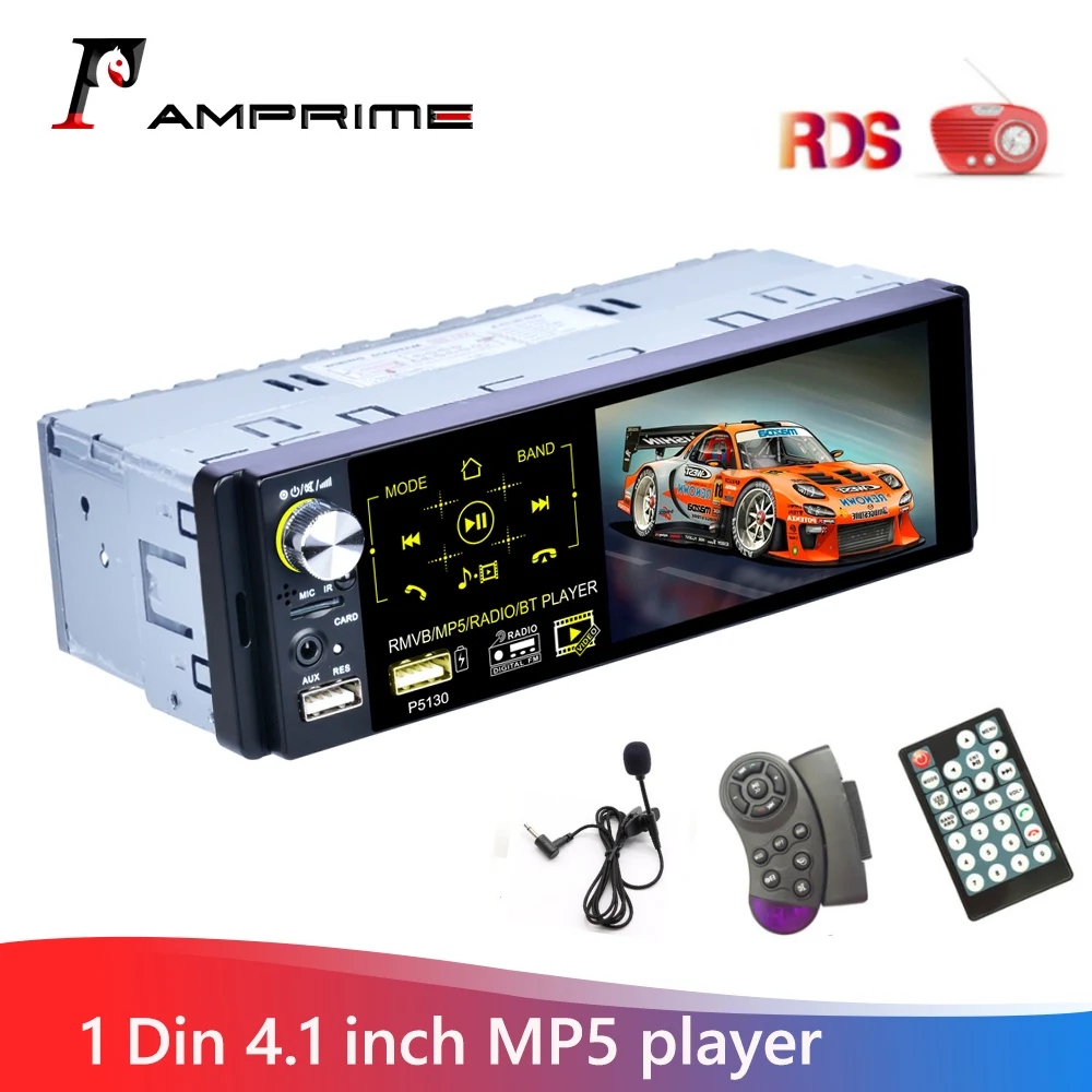 Автомагнитола AMPrime, мультимедийный плеер с сенсорным экраном 4,1 дюйма, MP5, Bluetooth, RDS, 2 USB