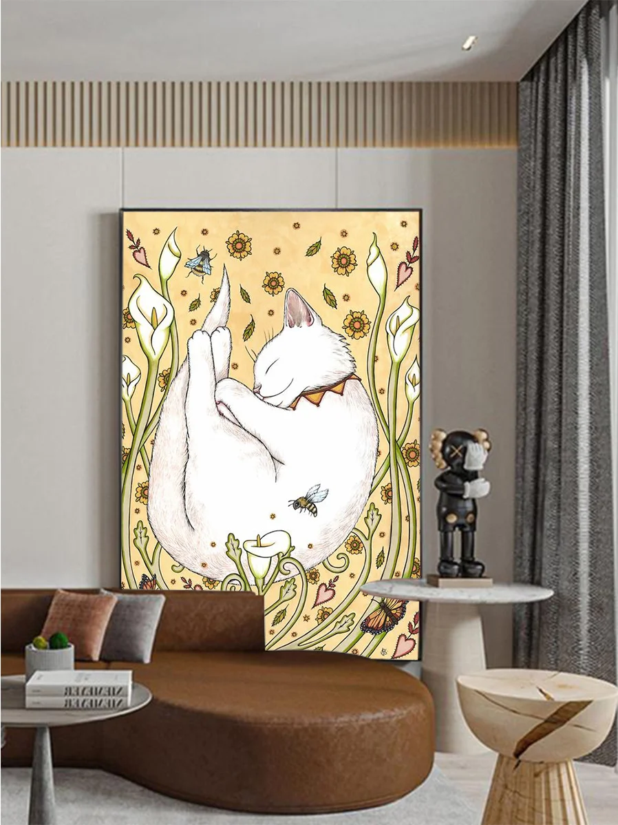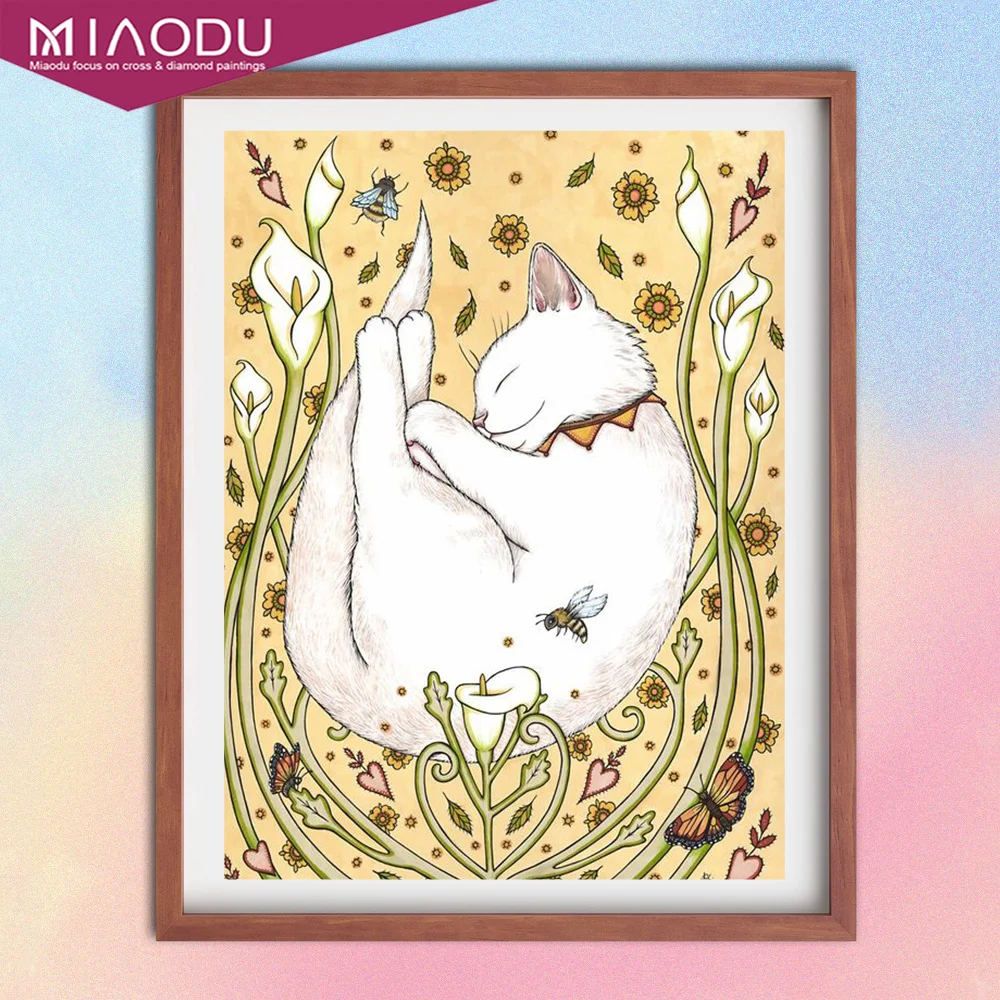 Картина 5D "сделай сам", алмазная живопись, кошка, цветы, Набор для...