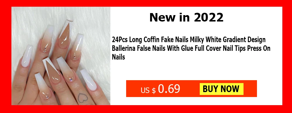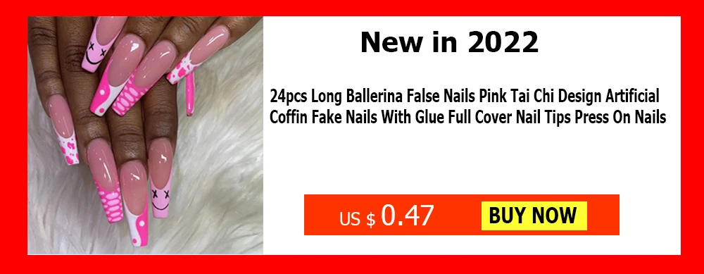 100% новый товар высокого качества.Материал изделия: АБС-пластикТип изделия: длинные балеткиПростота в использованииПодходит для использования с гелем, акрилом или стекловолокном.Посылка включает в себя:24 шт./кор. накладные ногти + клей