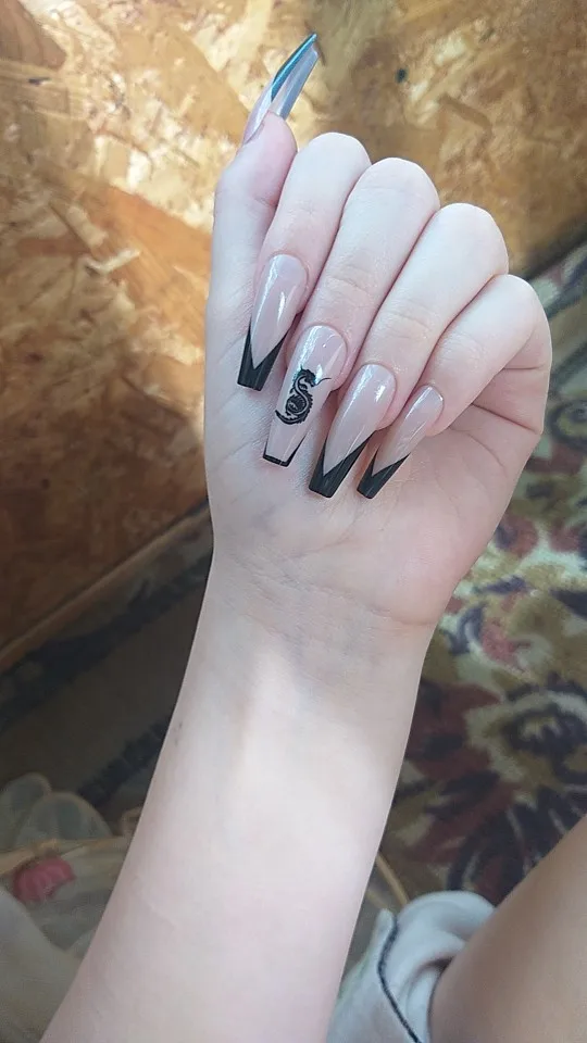 24 шт. накладные ногти с черным драконом V форма дизайн длинный гро...