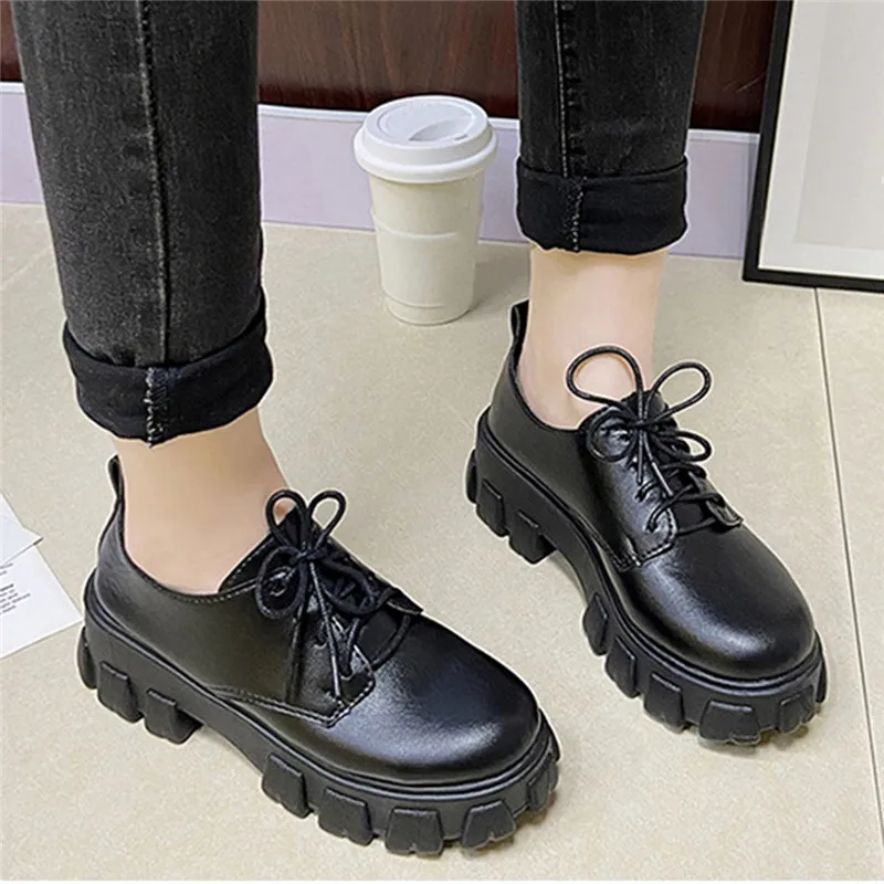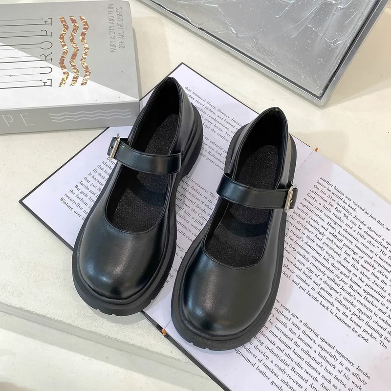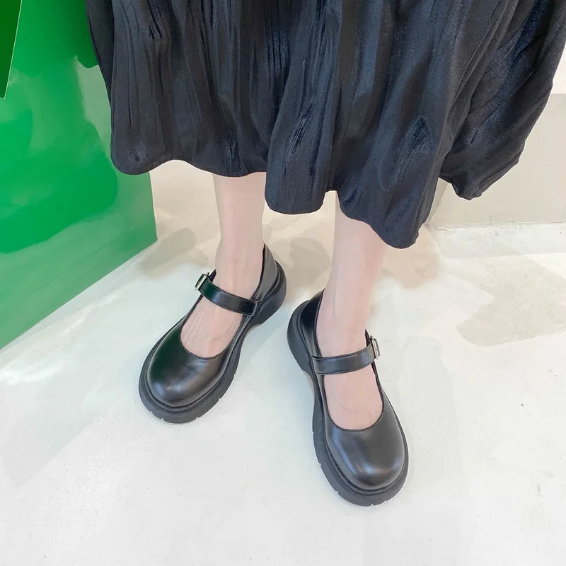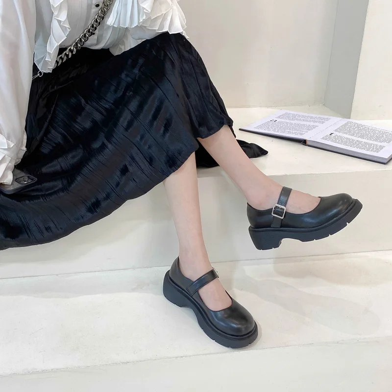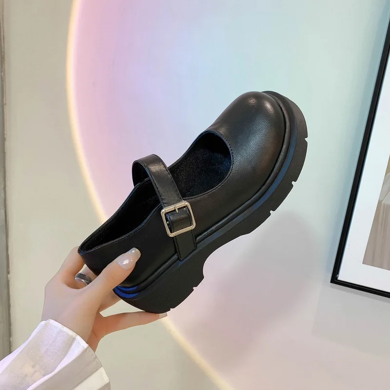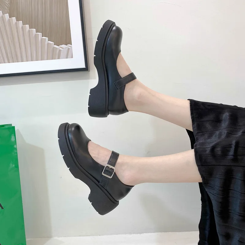 Кожаные Туфли Мэри Джейн на платформе женские осенние туфли на толстой подошве с ремешком на щиколотке 5 см в японском стиле Лолита