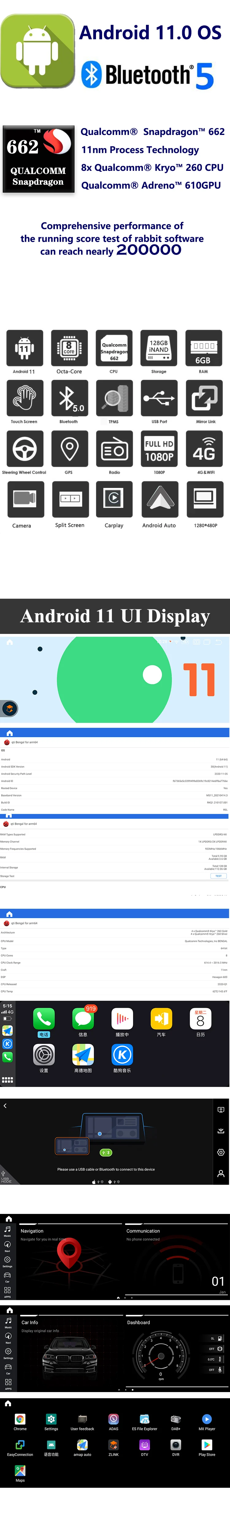 Автомобильный мультимедийный плеер, Android 11, Snapdragon 662, 8 я...