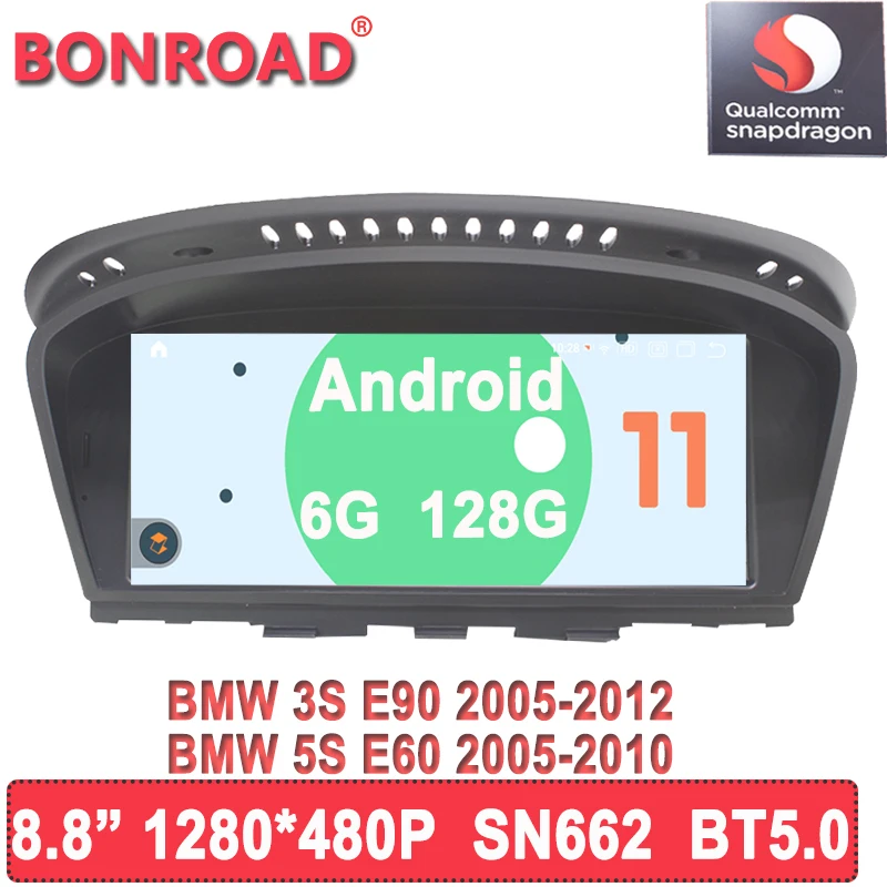 Bonroad Android 11 8,8 ''Автомобильный мультимедийный плеер 6G + 128G SN662 для BMW 5 серии E60 E61 E63 E64 E90 E91 E92 CCC CIC радио GPS
