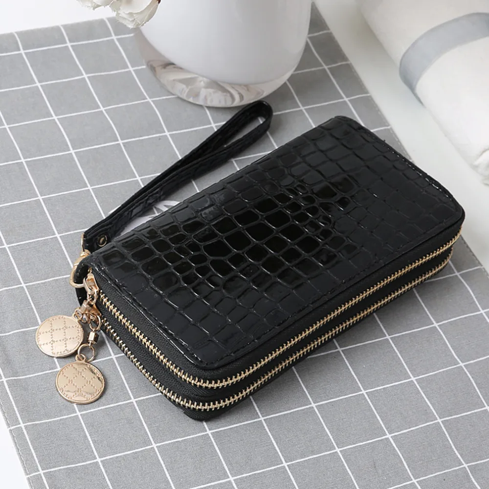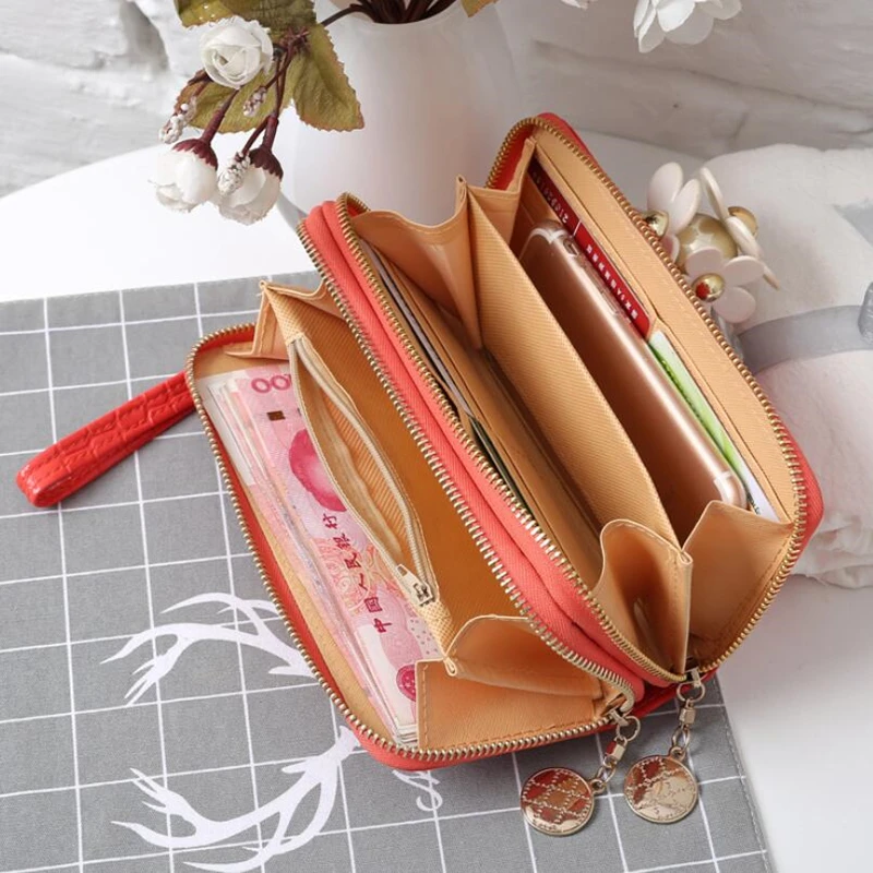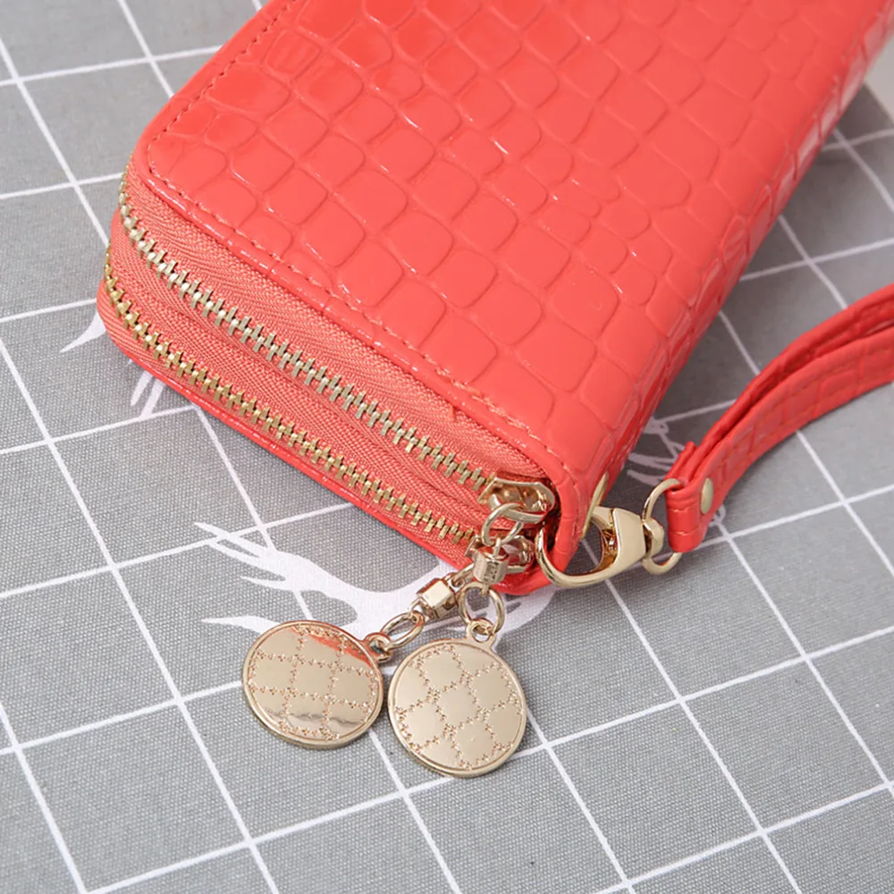 Красные/белые/черные женские кошельки с двойной молнией, модный бумажник для женщин, женская длинная дизайнерская сумка, сумка для телефона, хит продаж