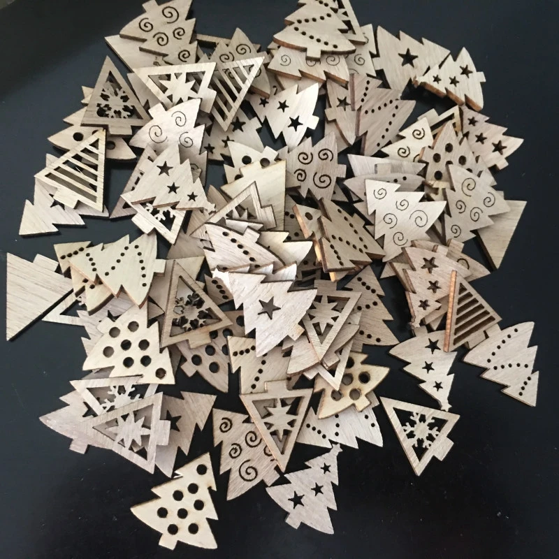 50 шт. рождественские украшения сделай сам, Натуральный Деревянный чип, Санта-Клаус, Рождественская елка, подвесные украшения, подвеска, детские подарки, снеговик, дерево