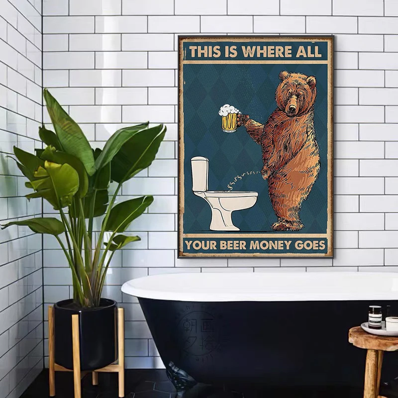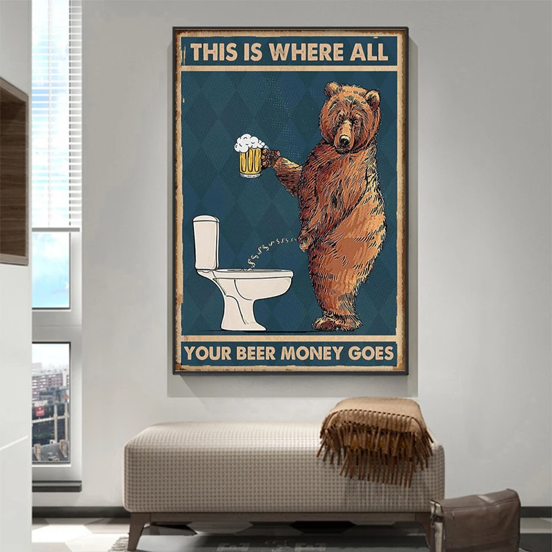 Фотообои с изображением медведя Grumpy, питьевое пиво в фотообои, картины для украшения дома