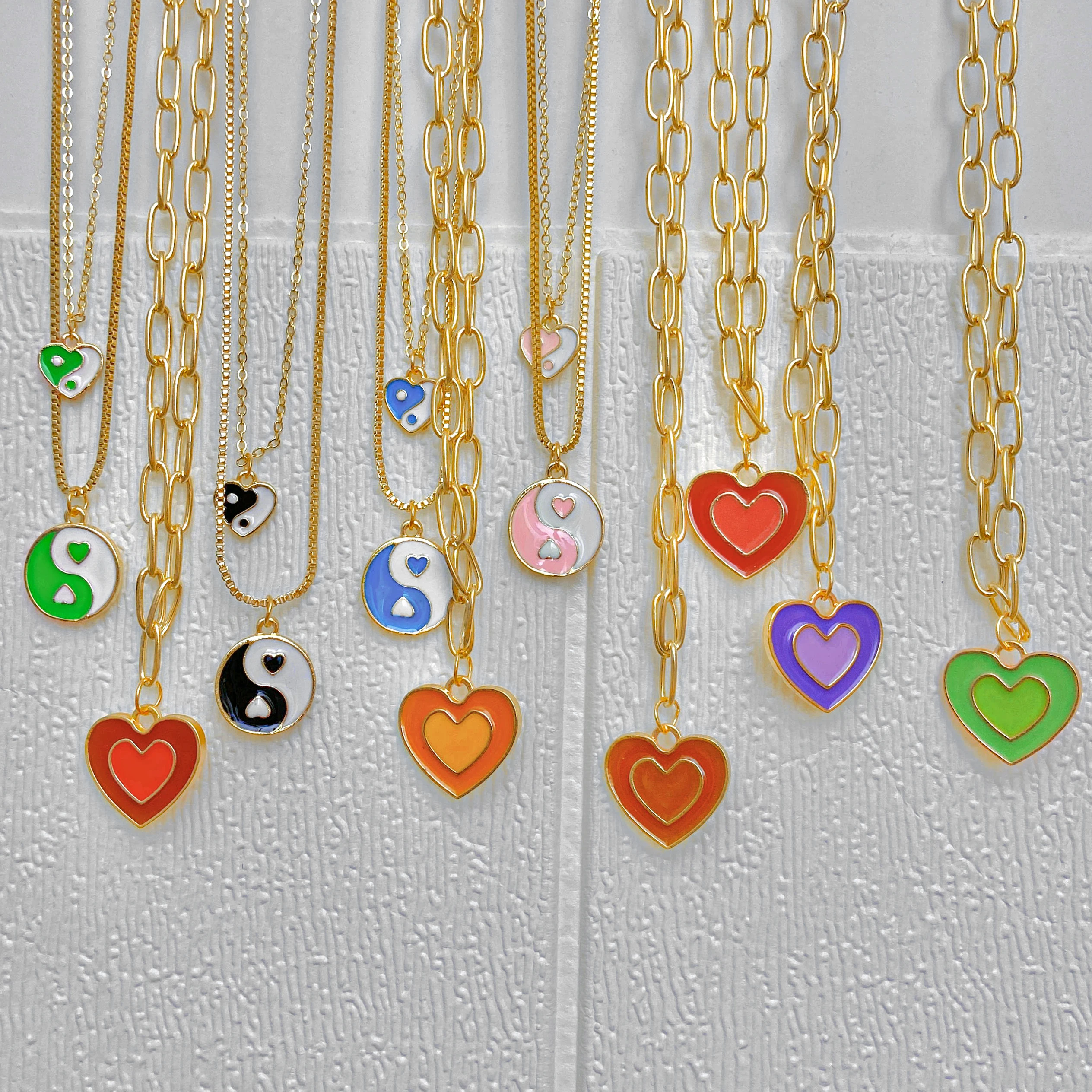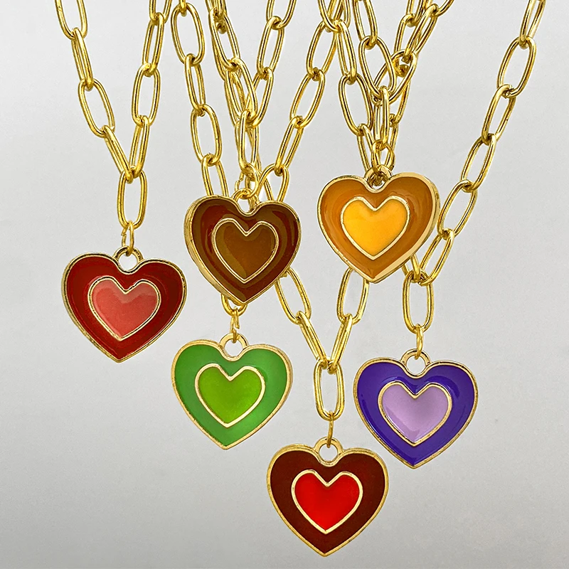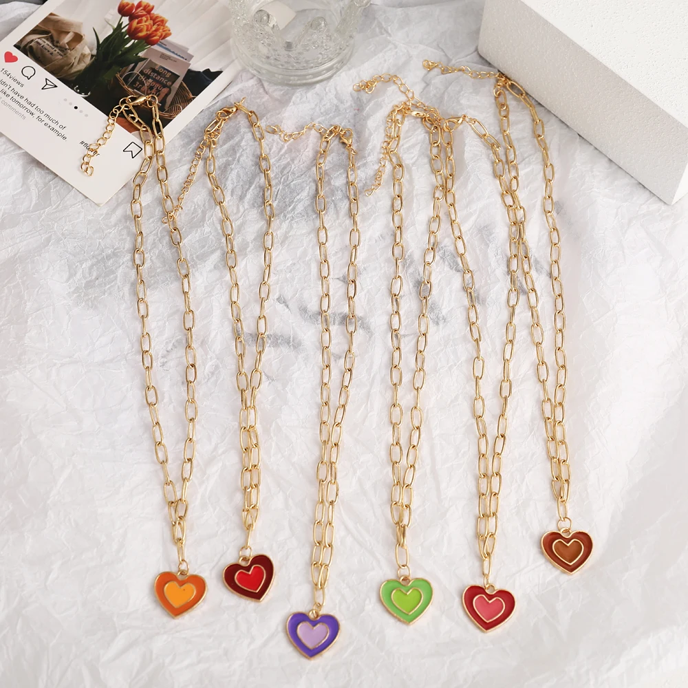 Многослойное ожерелье-чокер с радужным сердцем для женщин, 2021, разноцветные ожерелья с подвесками, цепочка, корейская бижутерия, ювелирные изделия для пар