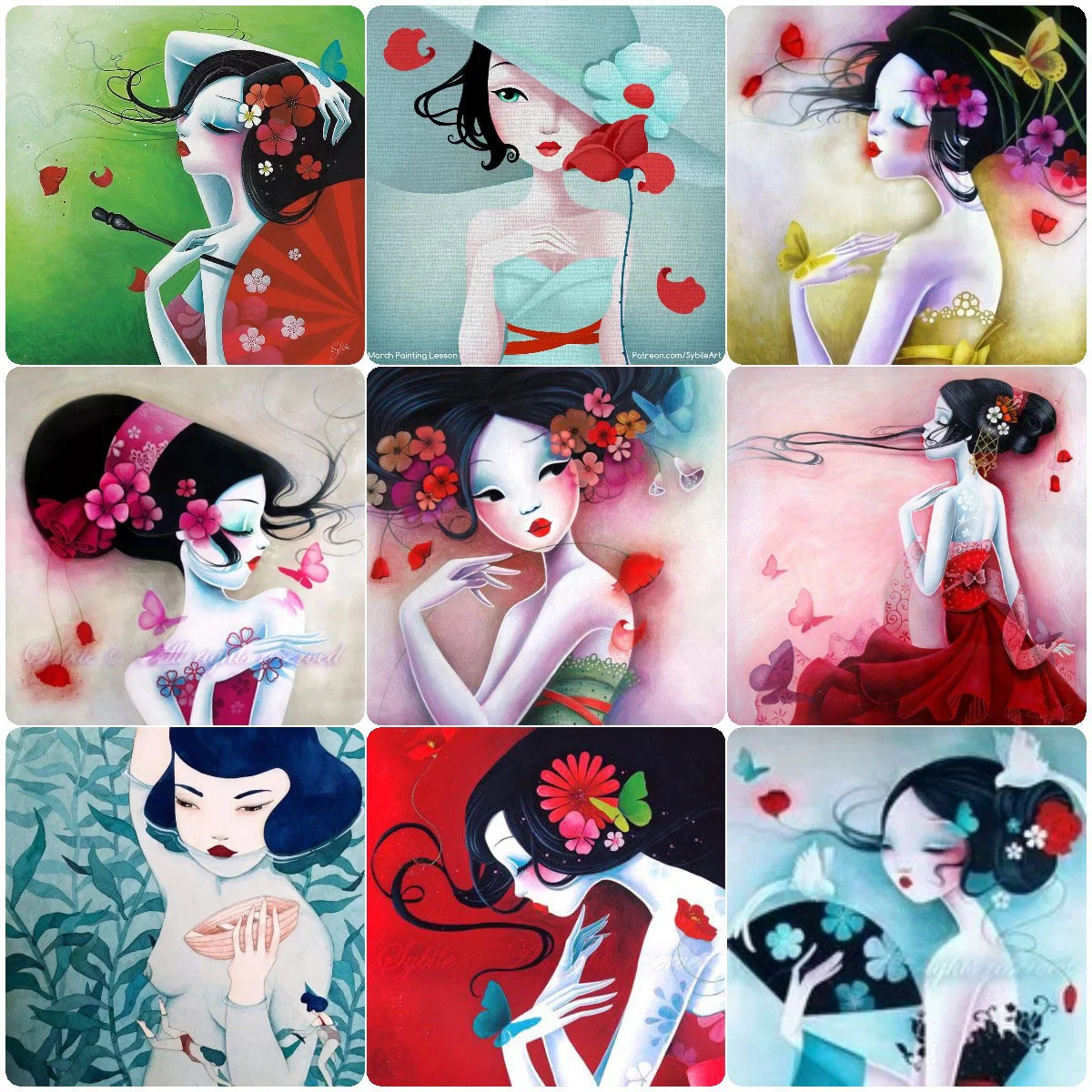 Мультфильм акварель Сексуальная гейша девушка 5D алмазная живопись вышивка крестиком полный укроп ручной работы искусство мозаика домашний Декор подарок