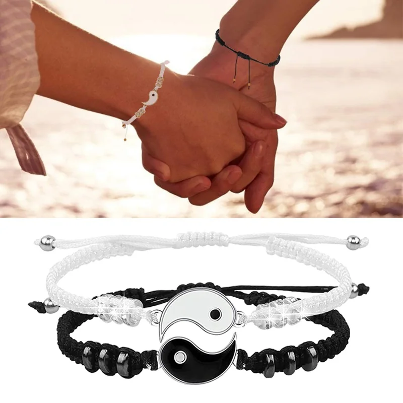 Браслет для пар Tai Chi Yin Yang для влюбленных Регулируемая плетен...