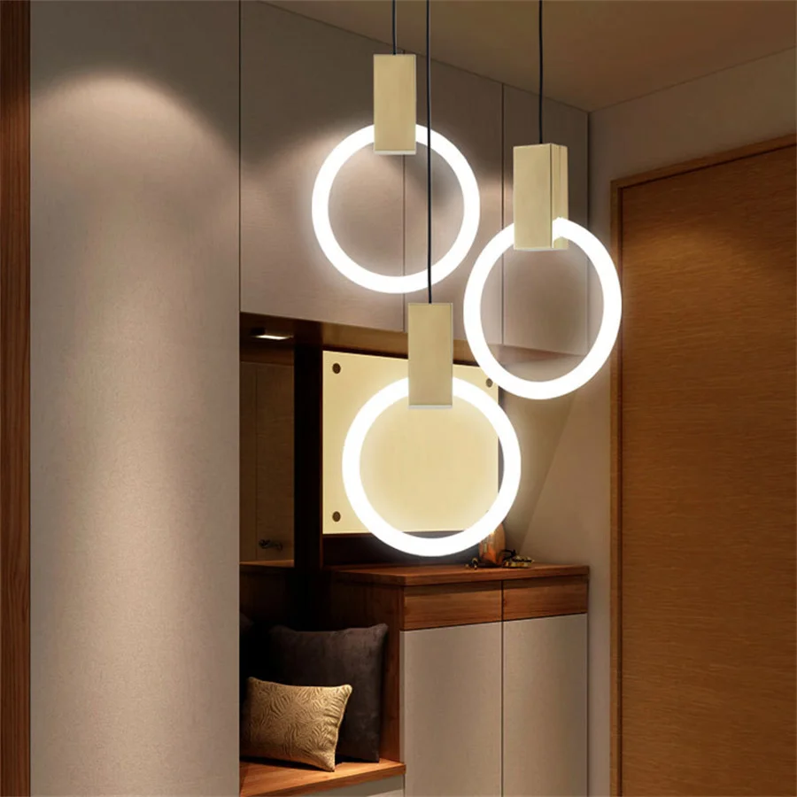 Современная потолочная светодиодная люстра, металлический светильник для гостиной, акриловое кольцо, подвесные лампы в скандинавском стиле, для спальни, кухни, подвесной светильник
