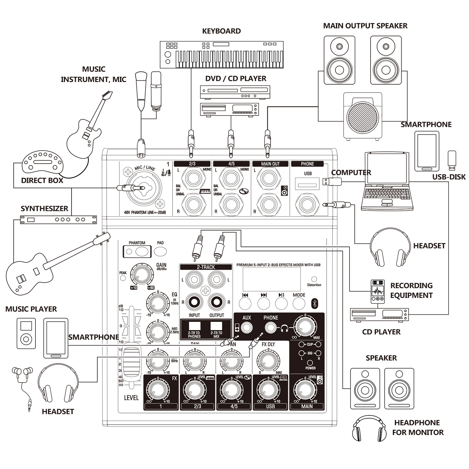 Просто шикарный пультик, именно такой давно хотел. Для такого малышки богатая коммутация, с блютуз управляет плеером своими кнопками на пульте. Есть и обычный aux, и тюльпаны. Оба наушниковые выходы рабочие. Питается с USB шнура, как у смартфона. Инструментально-микрофонный вход достаточно убедительно работает, только фантом пока не испытывал. Как и к компьютеру не подключал, ибо есть отдельная звуковая карта. Сам пульт практически не шумит. В общем, кому нужен такой малыш, всячески рекомендую.