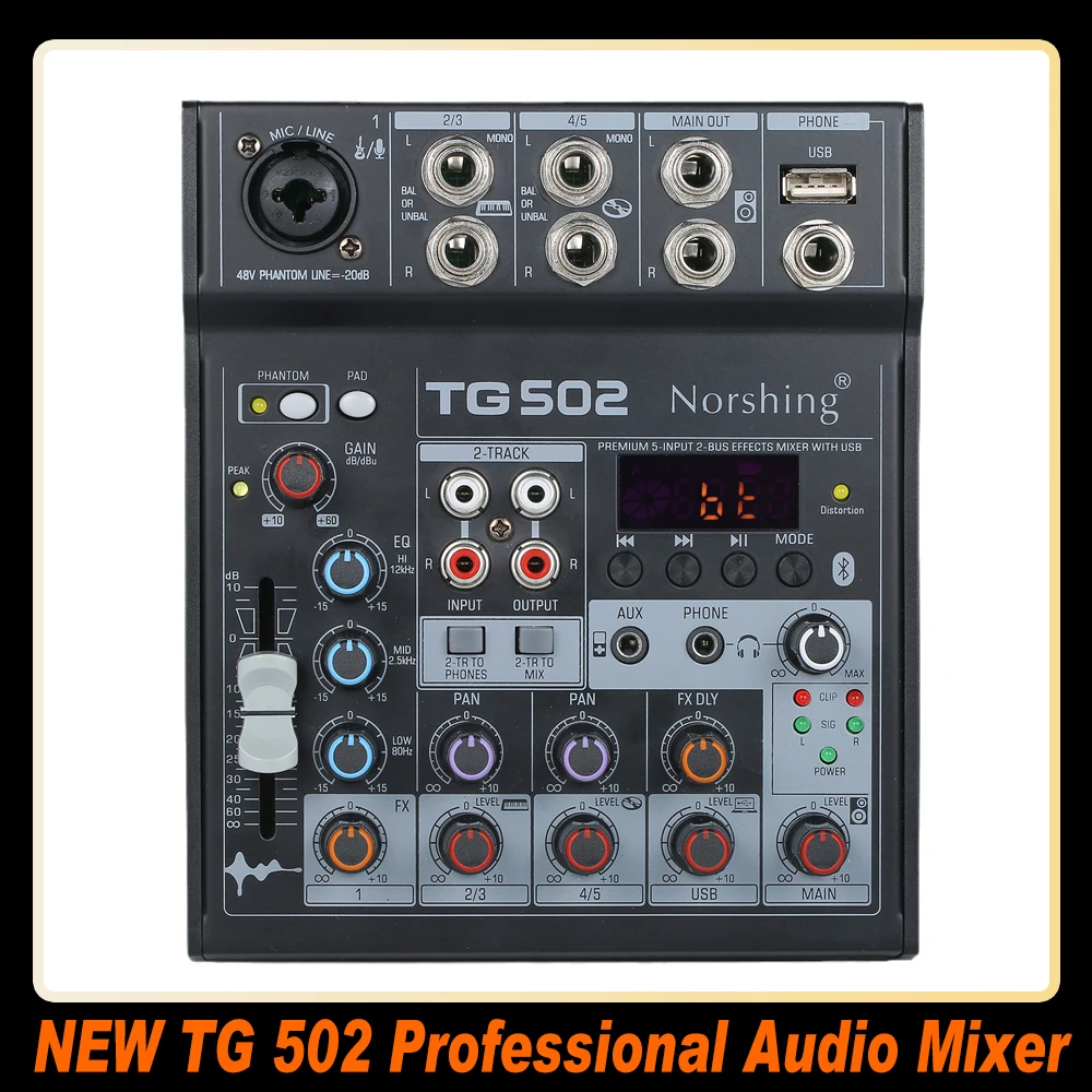 Norshing TG 502 профессиональный звуковой микшер 4-канальная стереозвуковая панель, консольная система USB BT MP3, компьютерный вход 48 В, фантомное питание