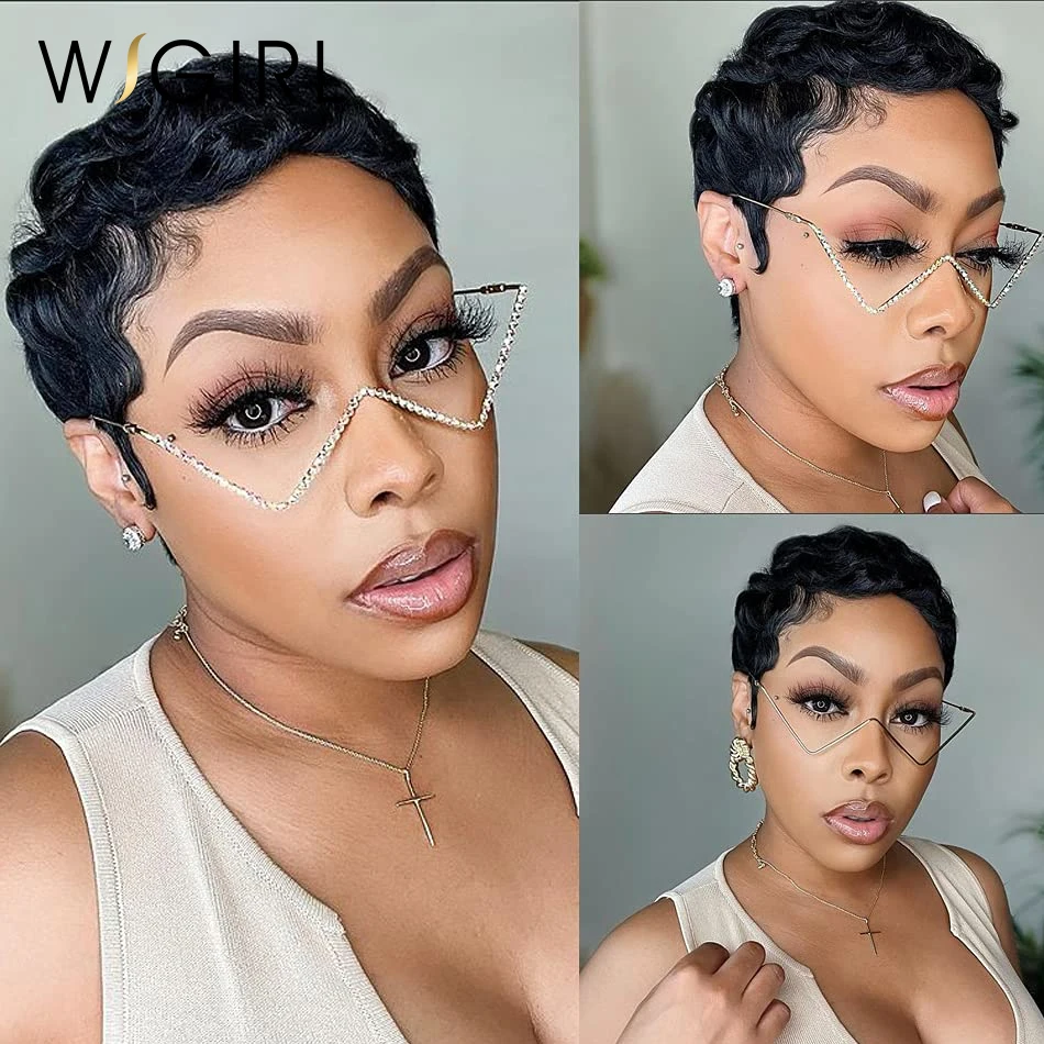 Wigirl парик с глубокими волнами, Короткие вьющиеся человеческие волосы, парик Боб Пикси, парик с кружевами, человеческие волосы для черных женщин, бразильские волосы