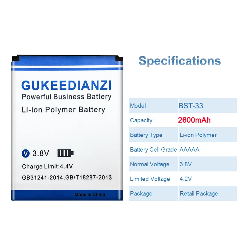 GUKEEDIANZI запасная батарея BST-33 2600 мАч для Sony Ericsson K800i K810i C702 C903 F305 G900