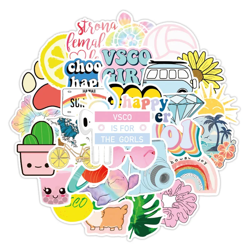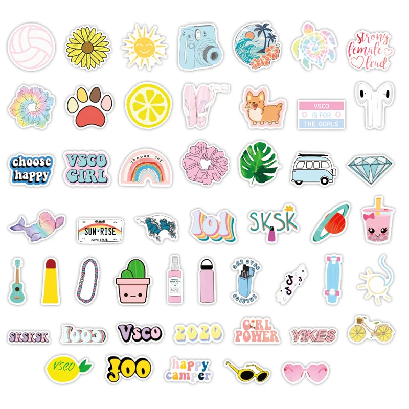 50 шт красочные VSCO простые наклейки для девочек Kawaii для детских игрушек водонепроницаемый стикер для DIY ноутбука велосипеда стикер