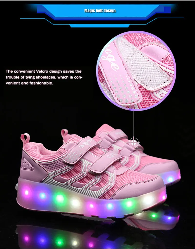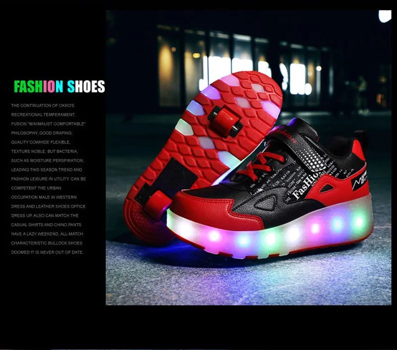 Детские модные светящиеся кроссовки на двух колесах, обувь для роли...