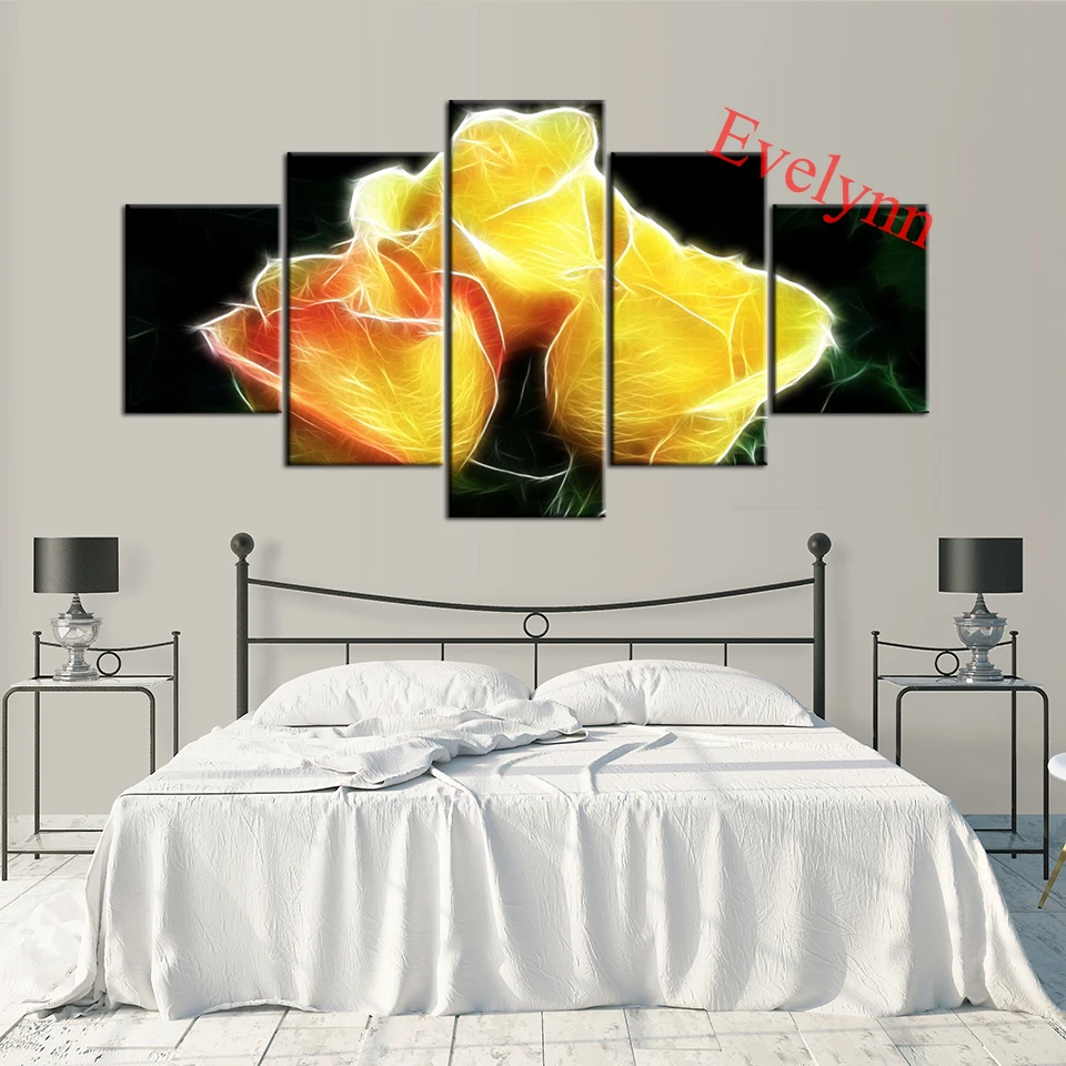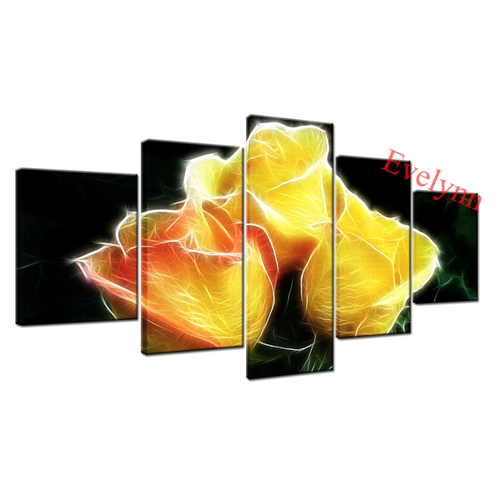 Современная желтая роза, Настенная Модульная картина из 5 элементов для гостиной, домашний декор, картина с рамкой, подарок для семьи