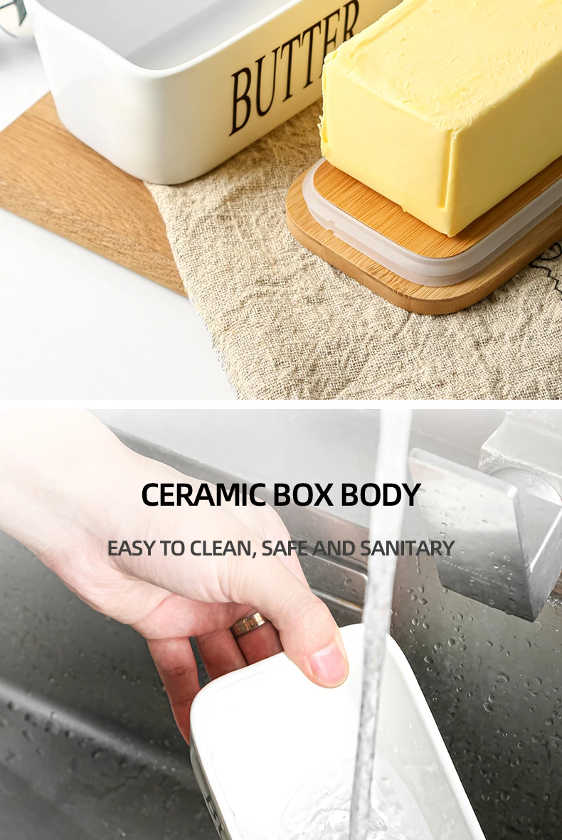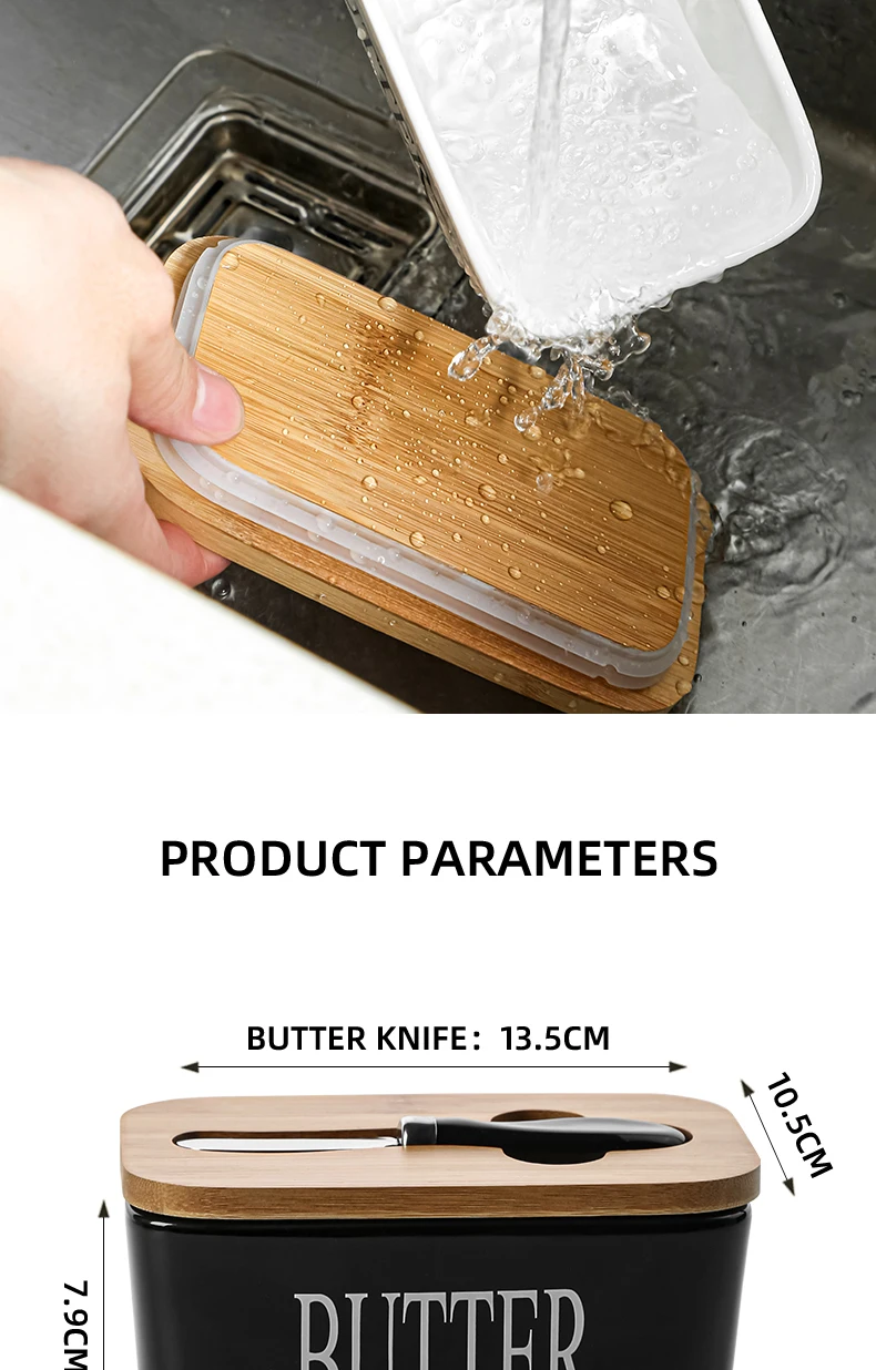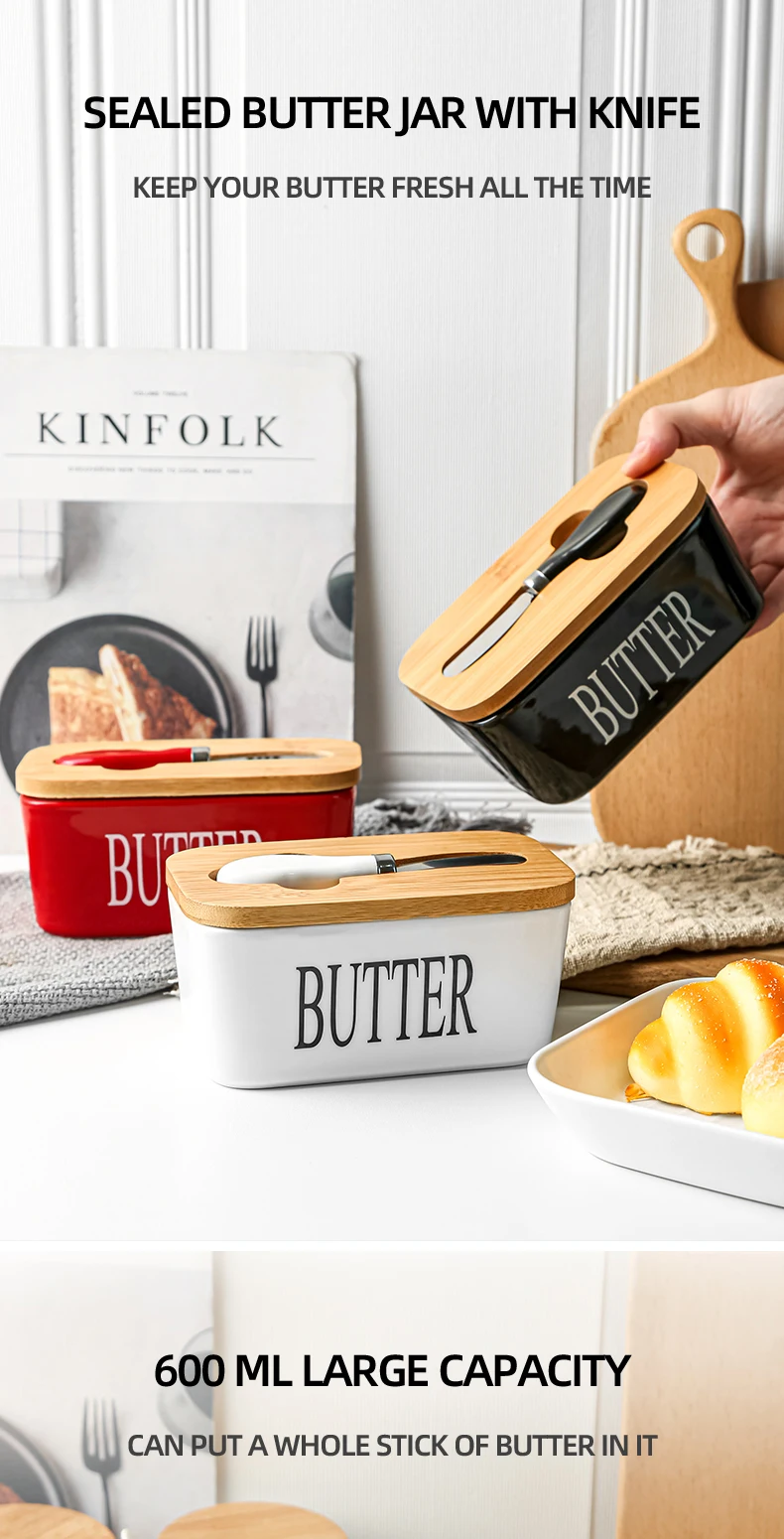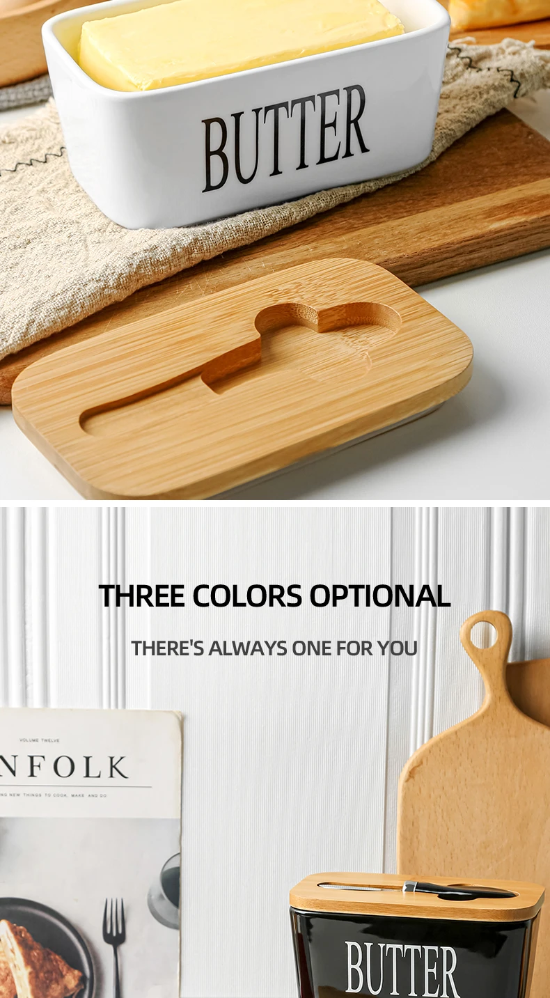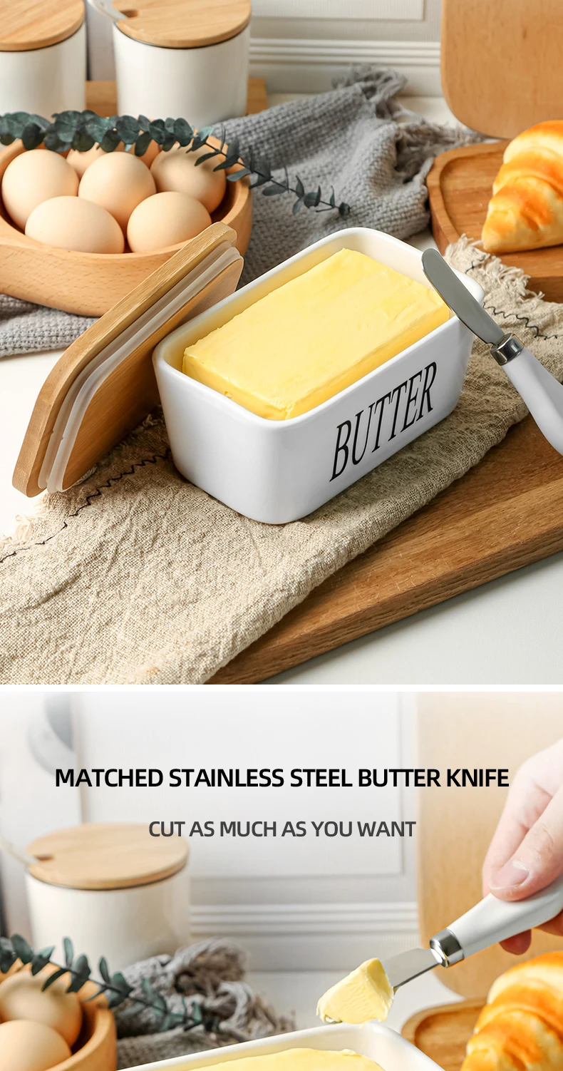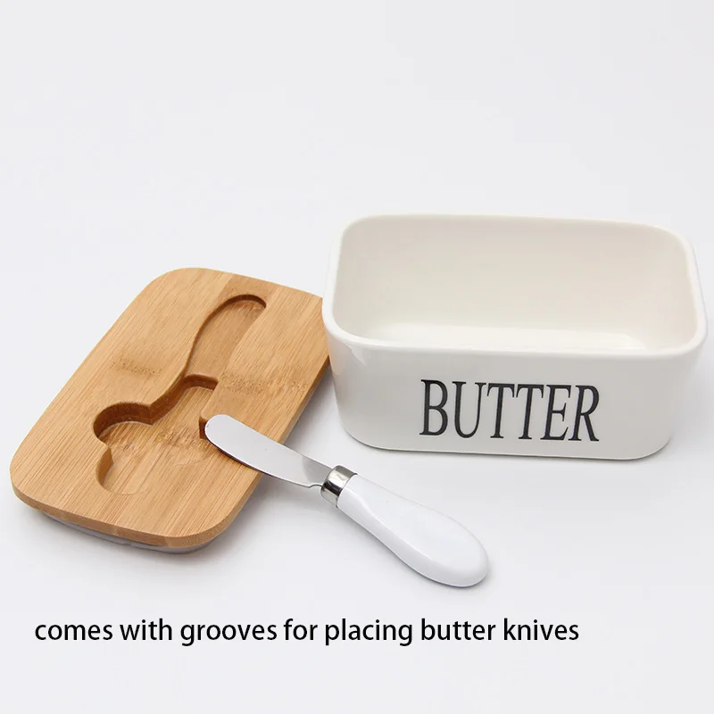 Керамическая коробка для масла, лоток для хранения сыра с деревянной крышкой, нож для еды, тарелка для масла, контейнер для кухни