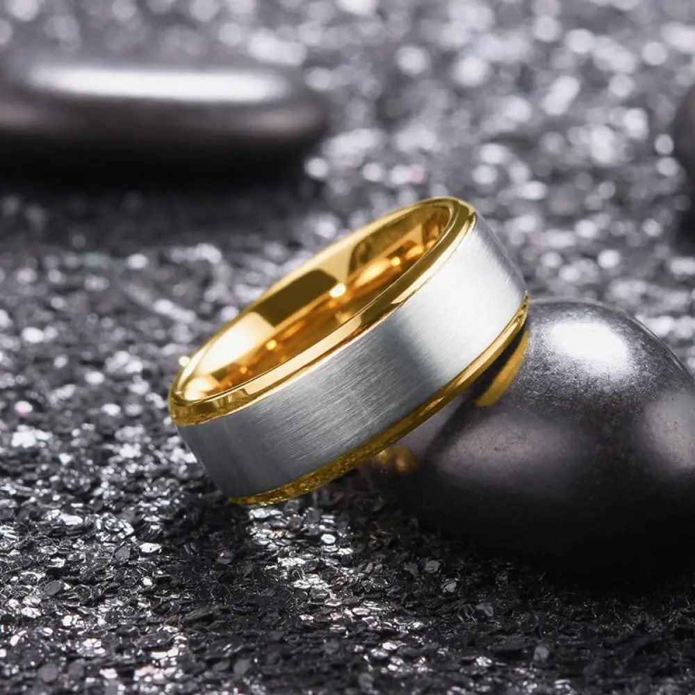 Мужское кольцо 8 мм, вольфрамовое, розовое, черное, матовое, из титановой стали